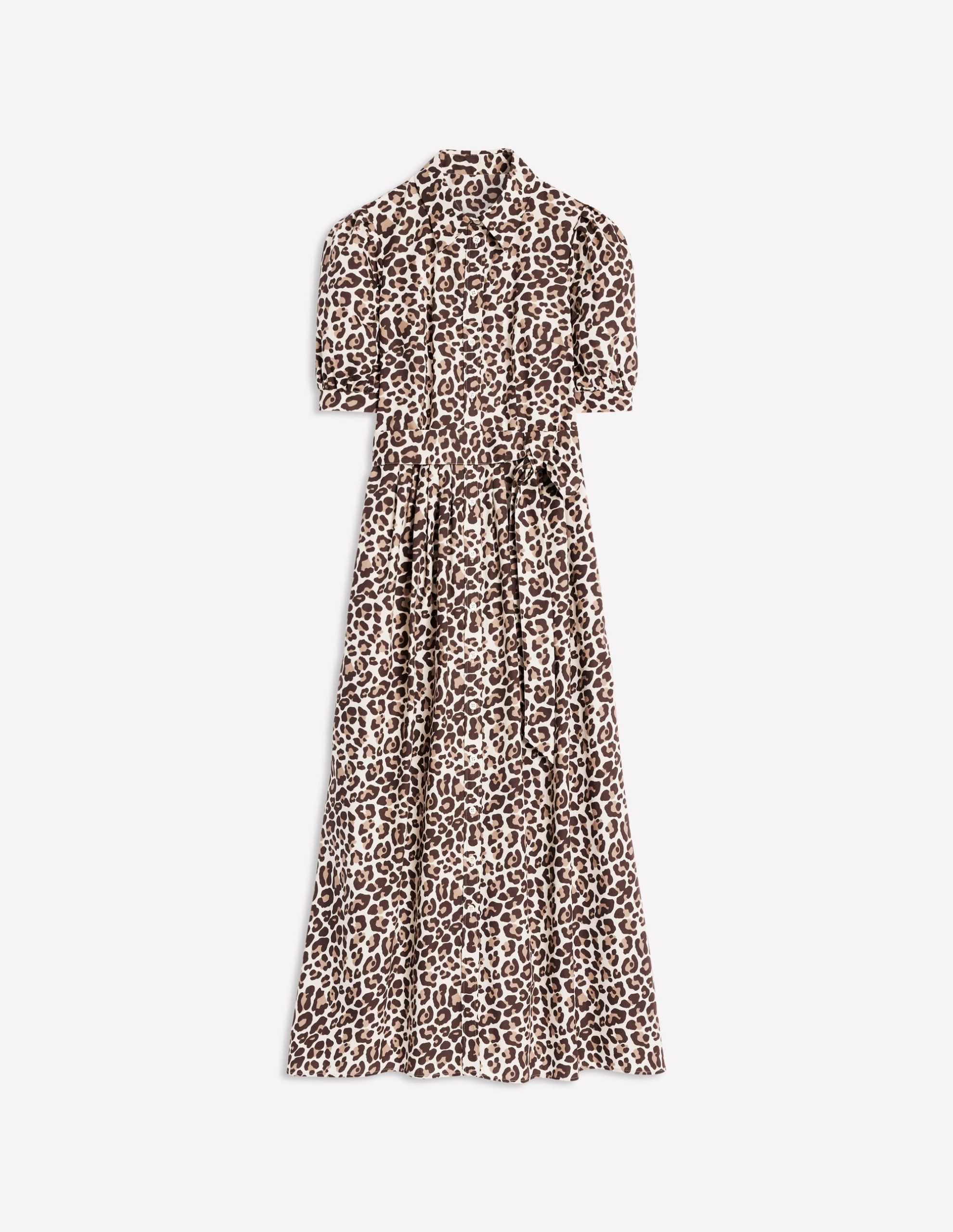 Alexa Maxi Shirt Dress-Sandpiper Beige. Cheetah Pop