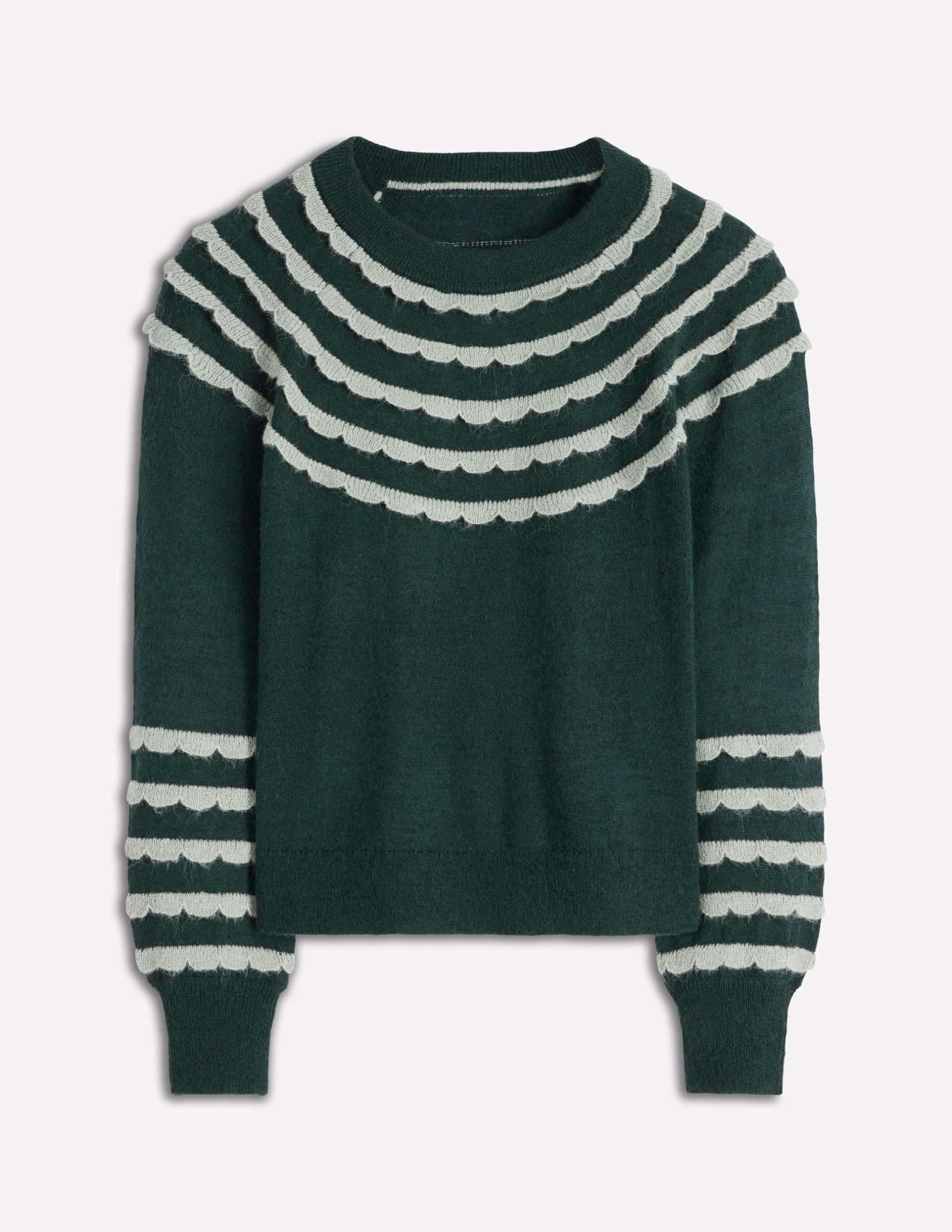 Combining cosy and colourful. our Alice jumper’s?textured?knit and bright pattern are offset by its raglan-style blouson sleeves and relaxed fit.