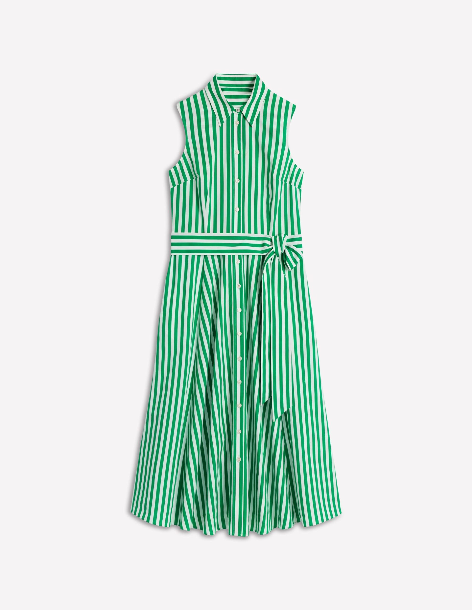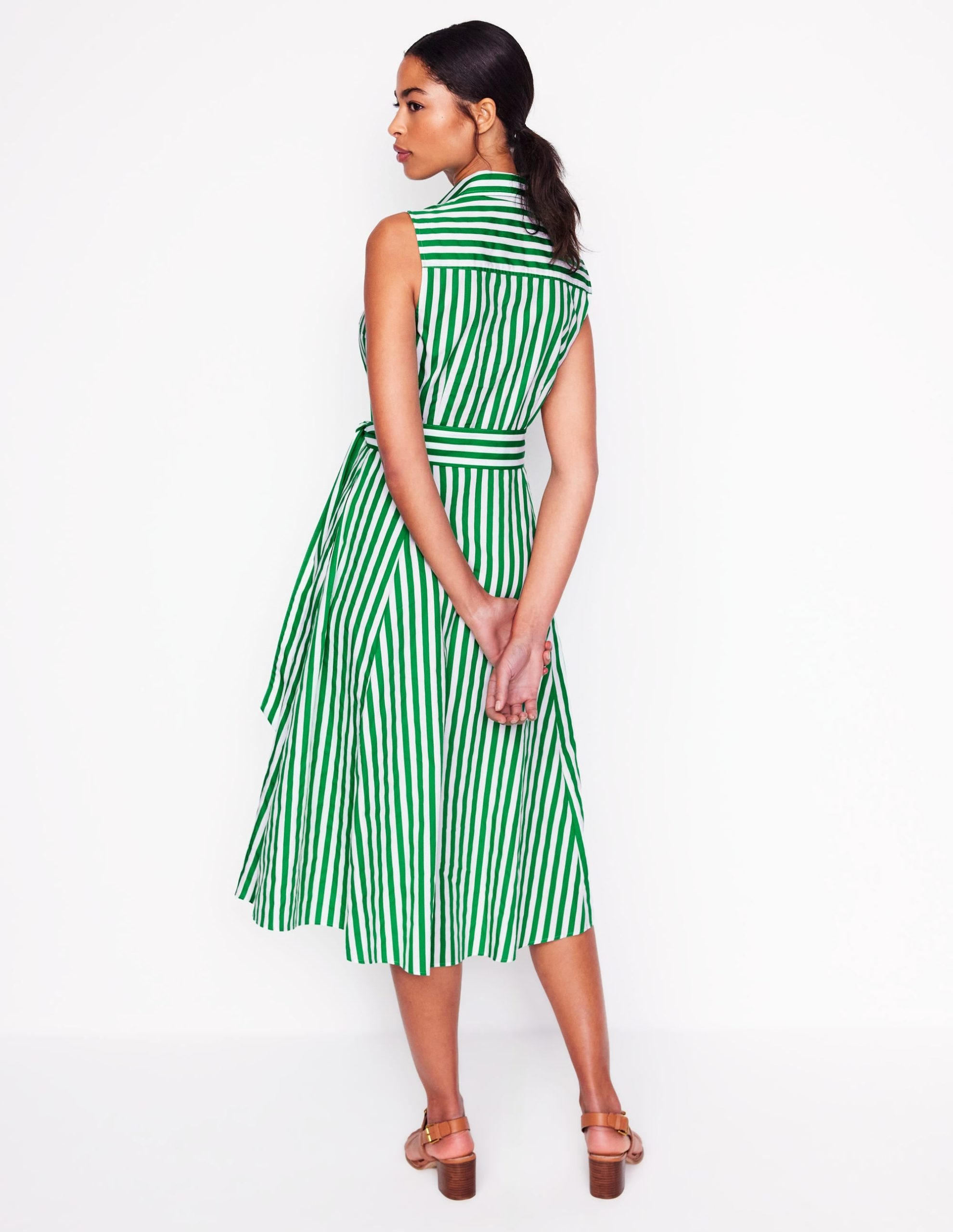 Amy Sleeveless Shirt Dress-Rich Emerald Stripe