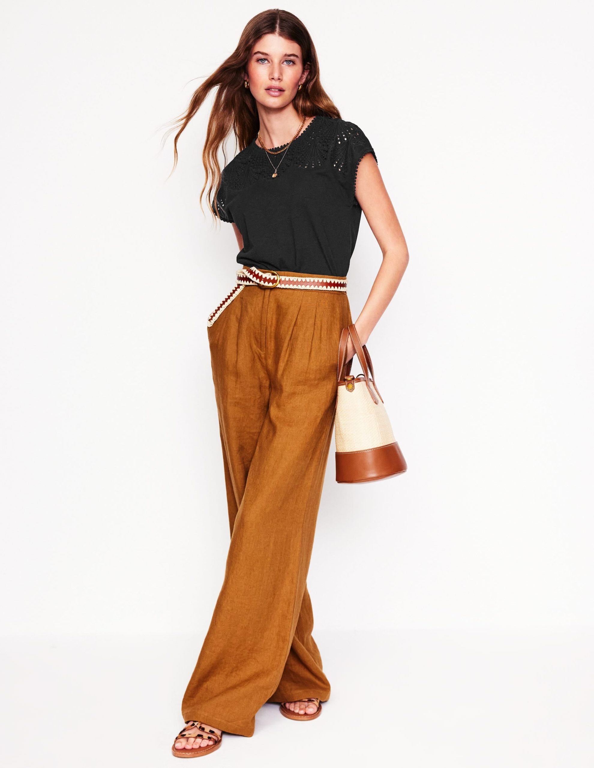 Decorated with scalloped broderie anglaise trims. the relaxed-fitting Anya cotton T-shirt is a romantic take on a stalwart style.