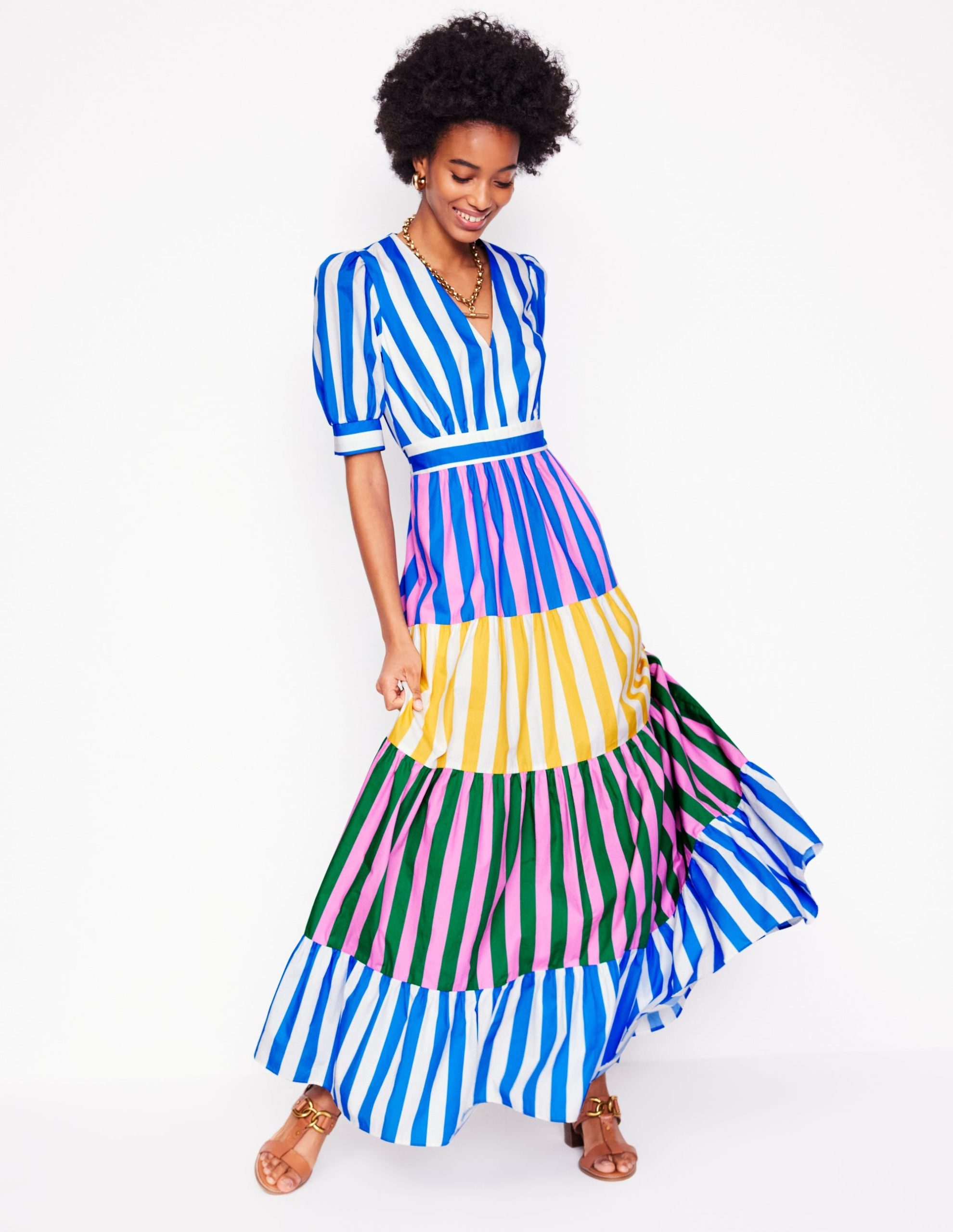 Bella Puff Sleeve Maxi Dress-Kingfisher Blue Stripe