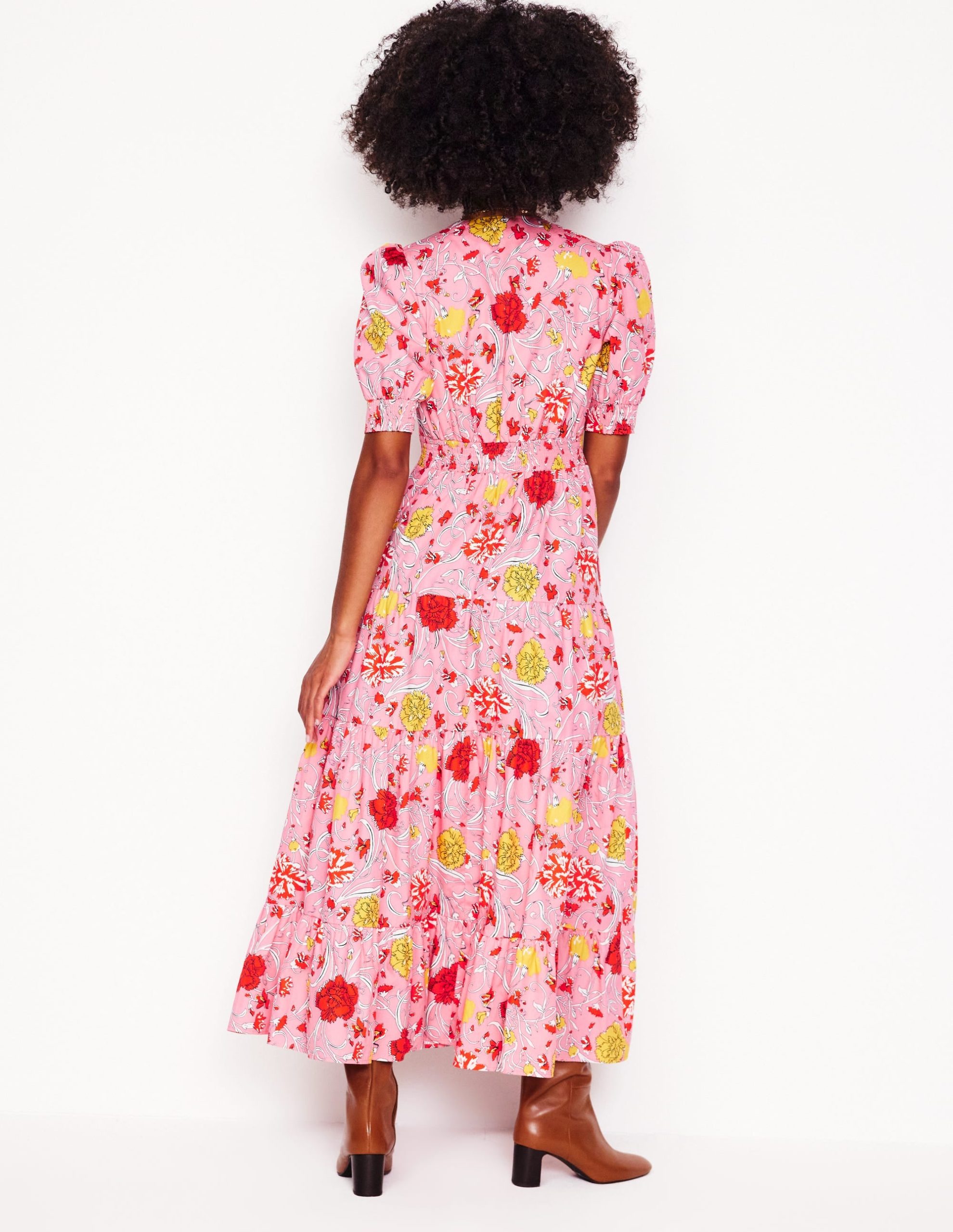 Bella Puff Sleeve Maxi Dress-Salmon Pink. Carnation Vine