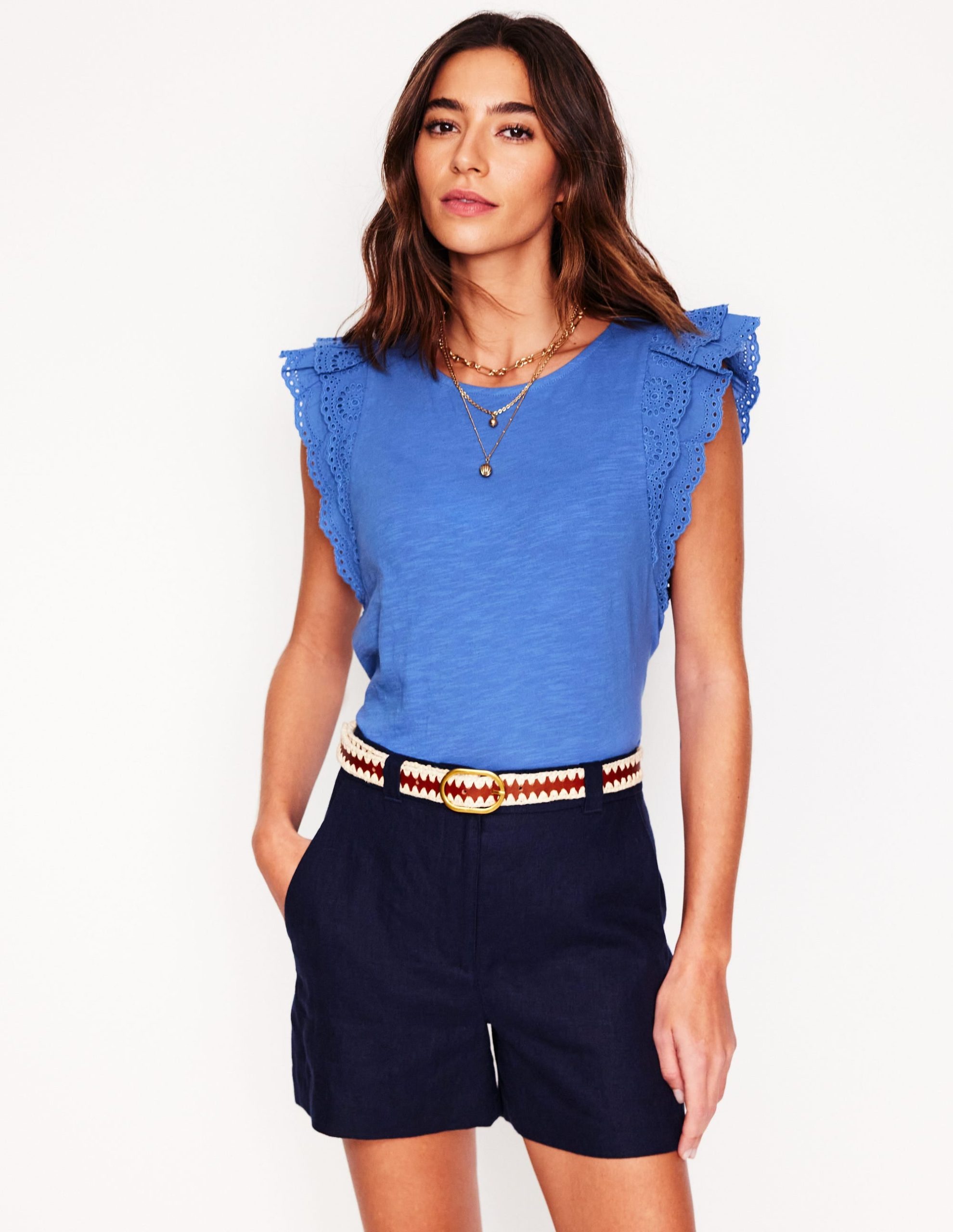 Delicate broderie take the Belle top from basic to blockbuster in one fell swoop.