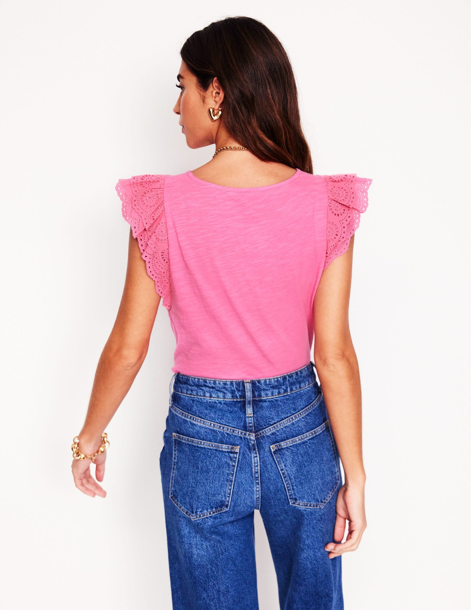Delicate broderie take the Belle top from basic to blockbuster in one fell swoop.