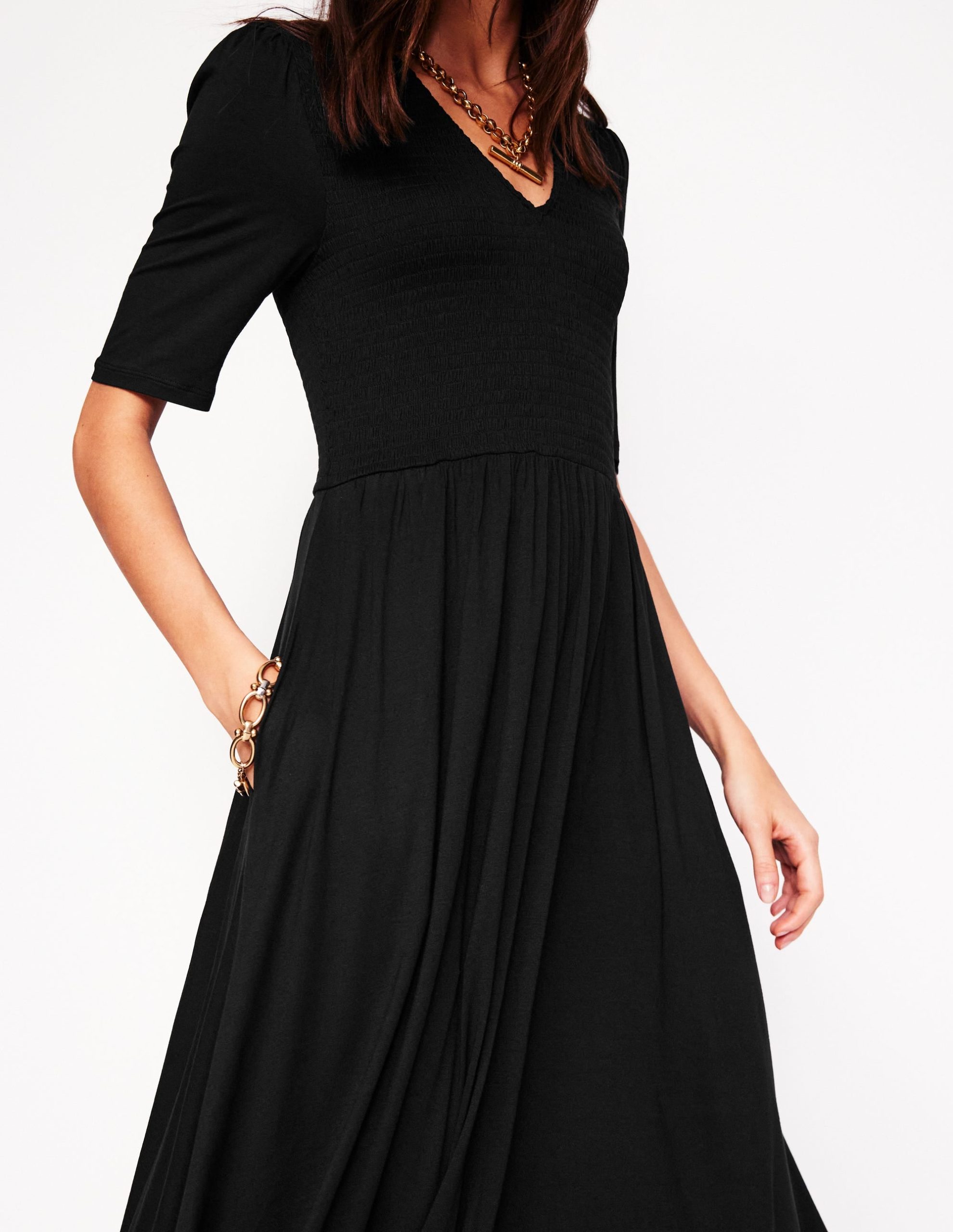 We don’t do things by half measures and we’ve gone full-on for smocking with the Bethany midi dress. We’ve added it across the front and back of the bodice and around the sleeve cuffs for good measure.