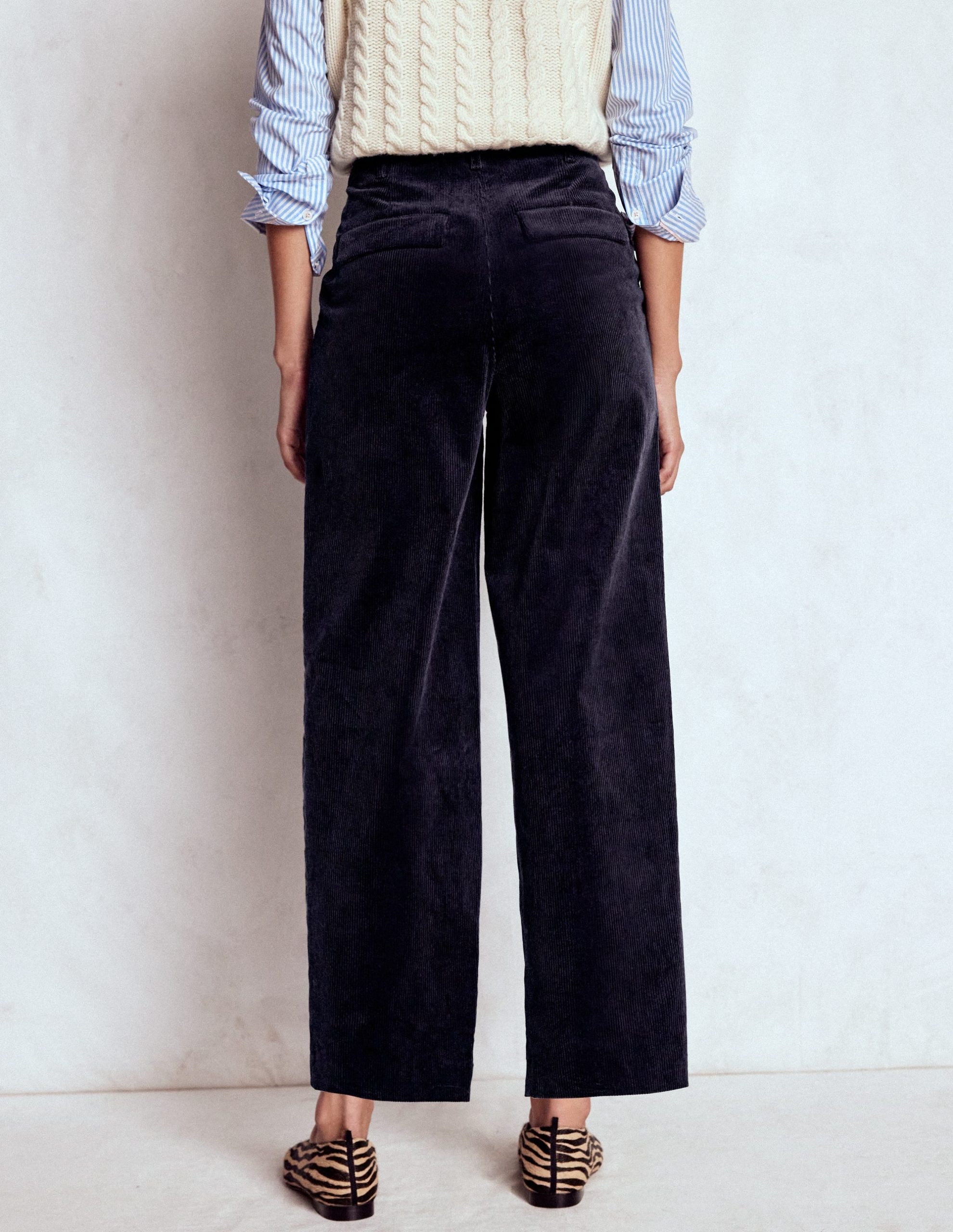 Effortlessly flattering these cord trousers are warm and smart with added soft volume and plush pleats. Pair with a cashmere cardi and loafers for work or a sweater for thanksgiving dinners.