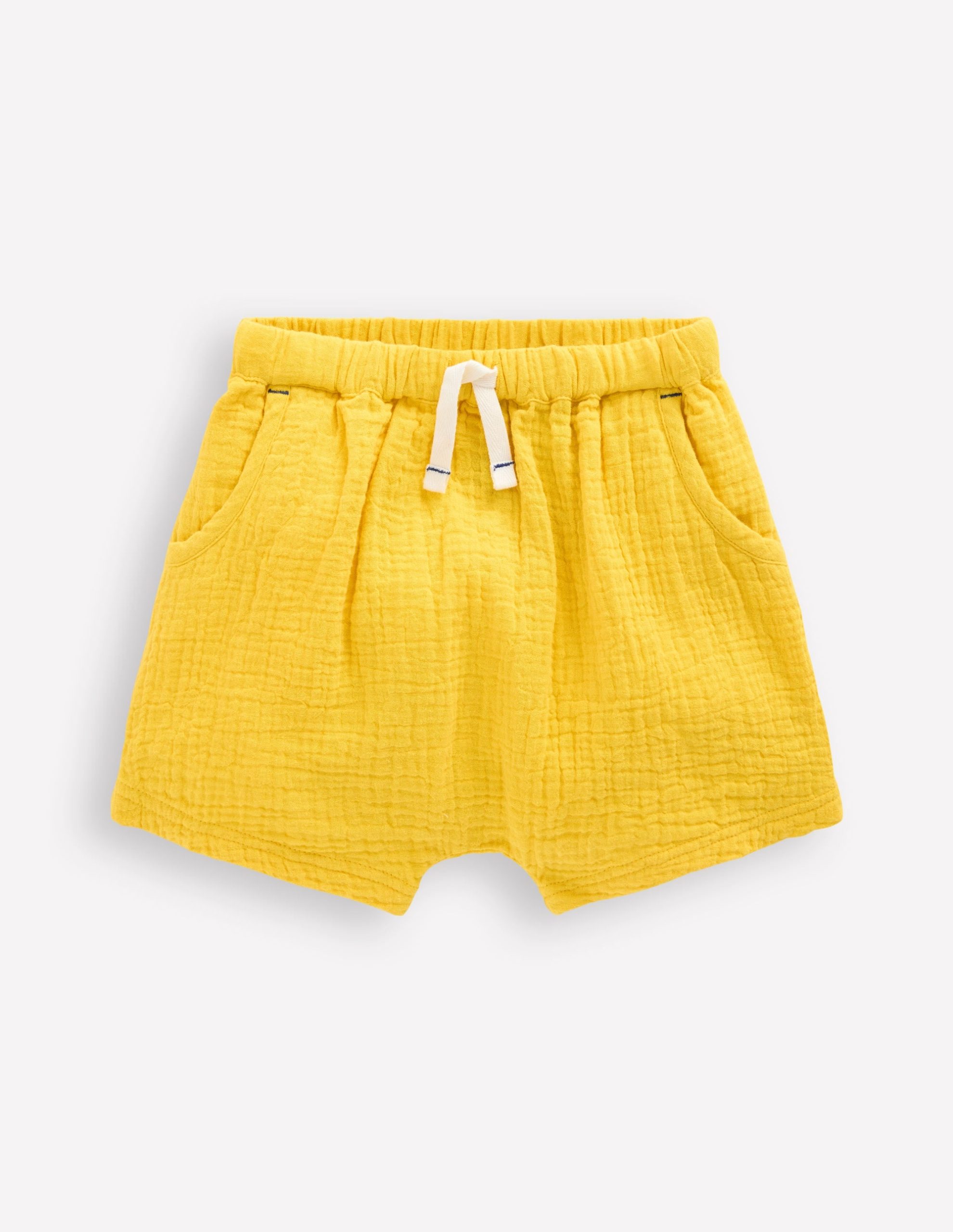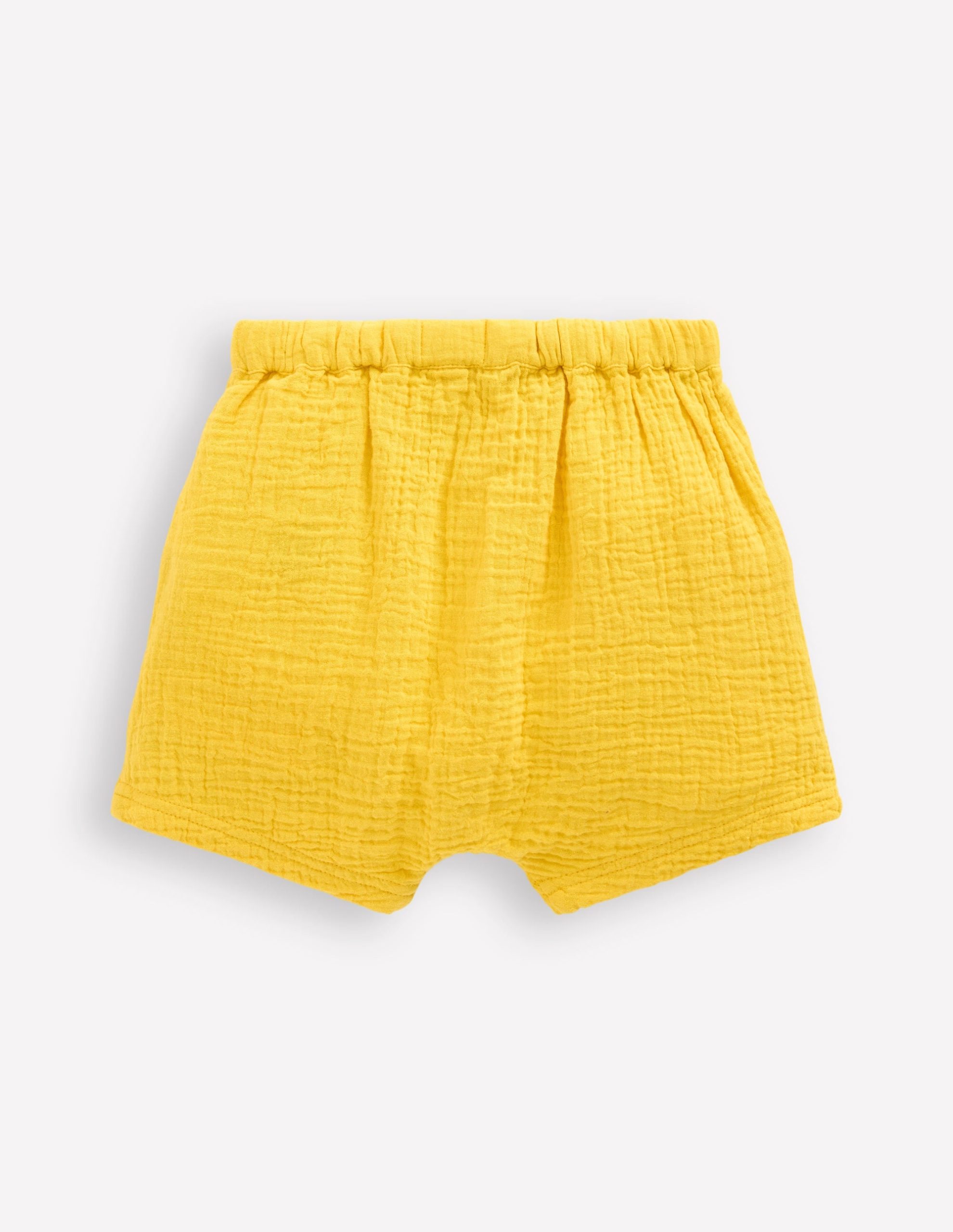 Whether they’re crawling. walking or still horizontal. Minis need the freedom of movement these woven shorts give them.