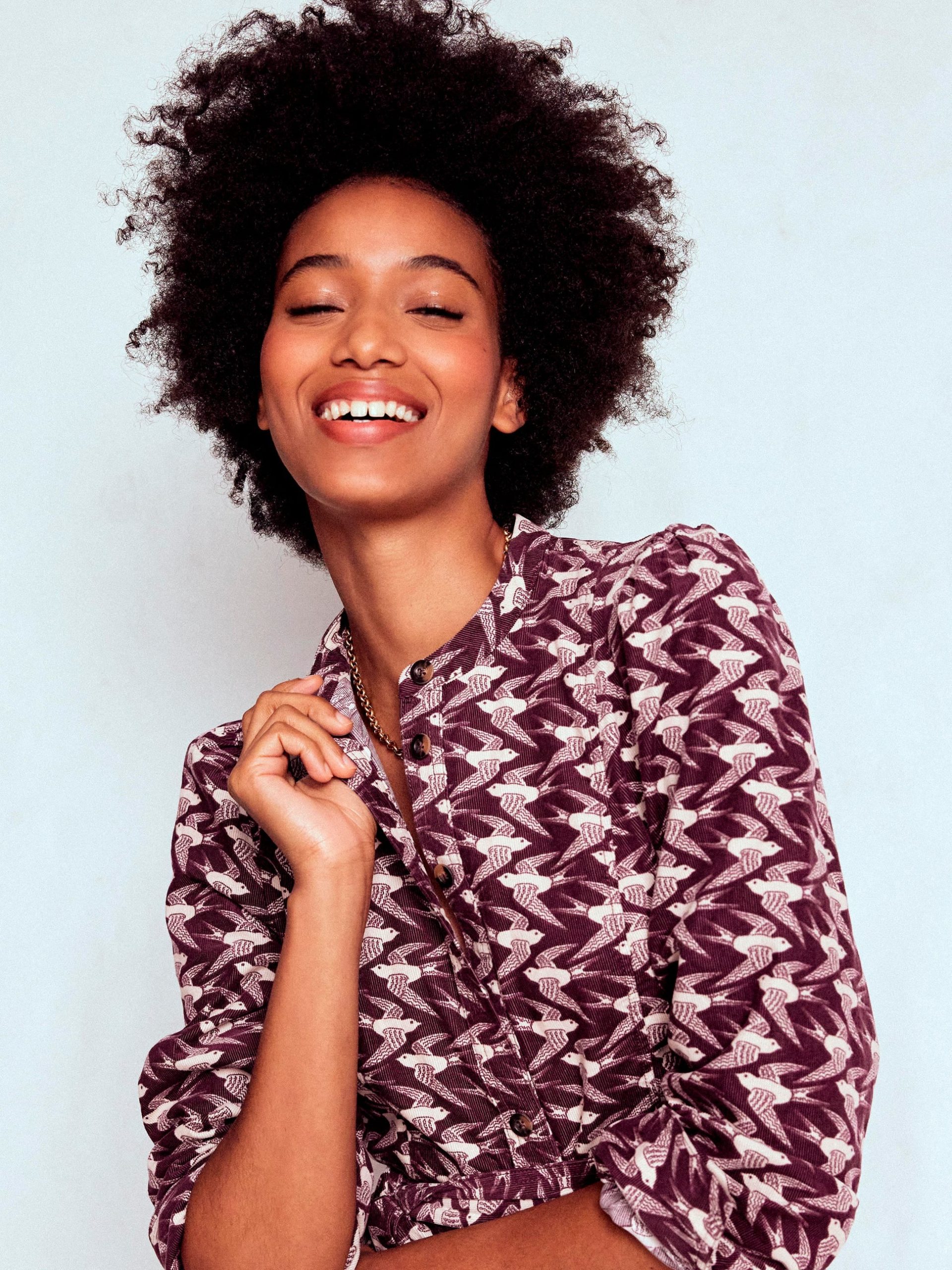 Who says you can’t wear cord to work? Bre’s fabric belt. blouson sleeves and fitted princess seams give a polished look perfect for office days. Plus. the colours will pop under a winter coat.