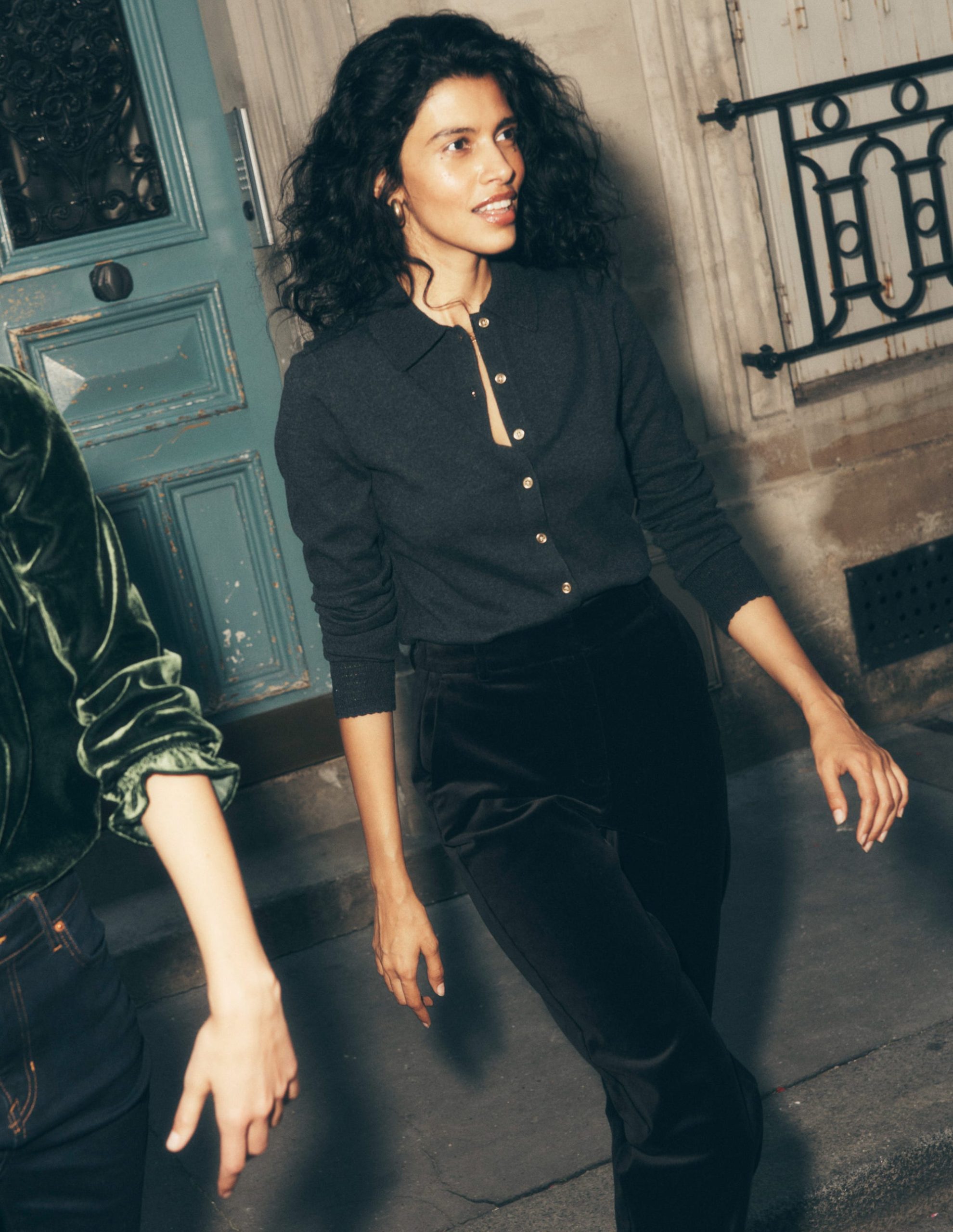 Our Briony cardigan is the stylish way to stay warm. Notice the gold buttons and fancy picot stitch on all the trims? That wasn’t an accident.