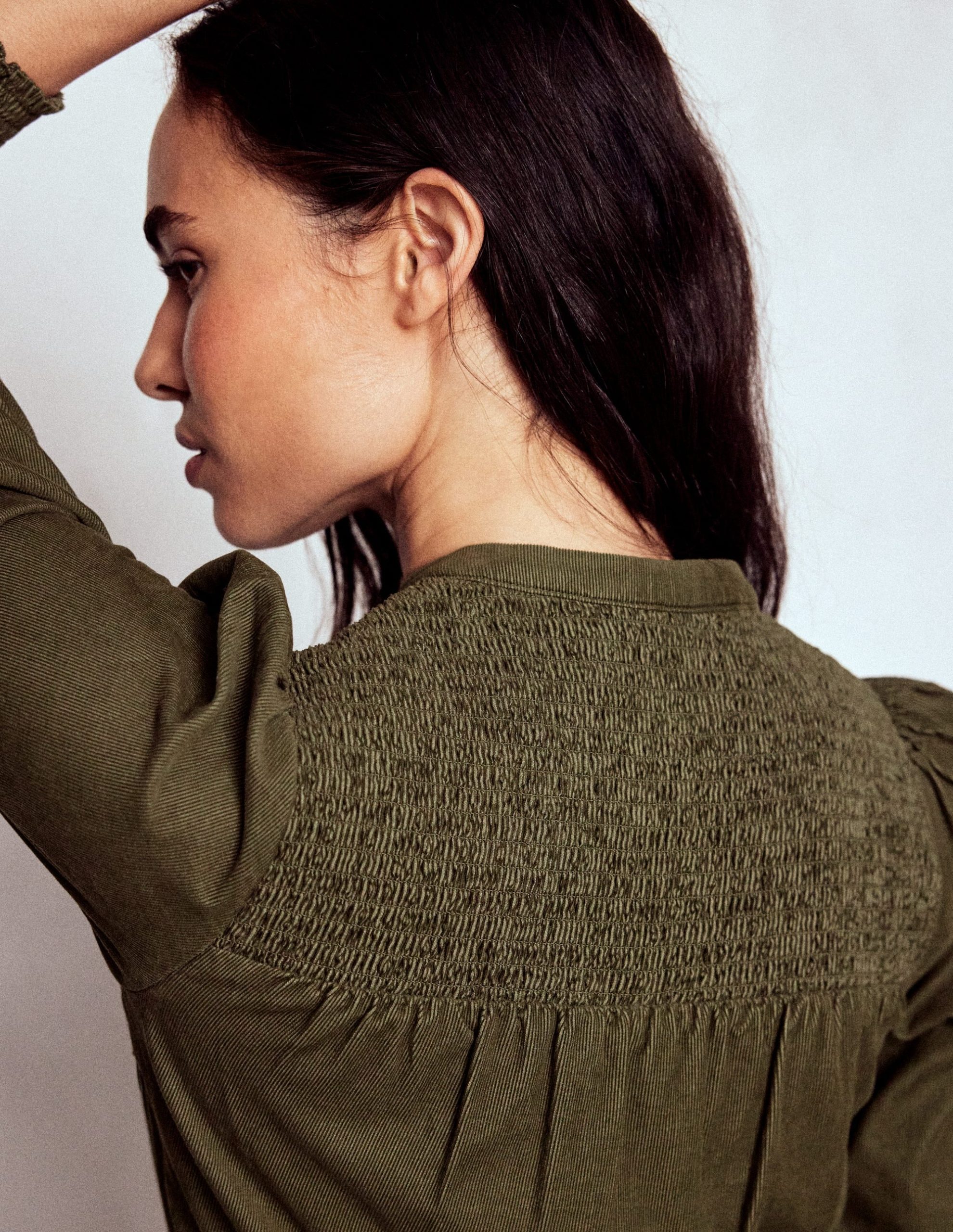 Our Cecily midi dress echoes a romantic feel with its smocking. blouson sleeves and gathered tiers. Plus. it’s made from soft cotton cord so it’s perfect for transitioning through the seasons.