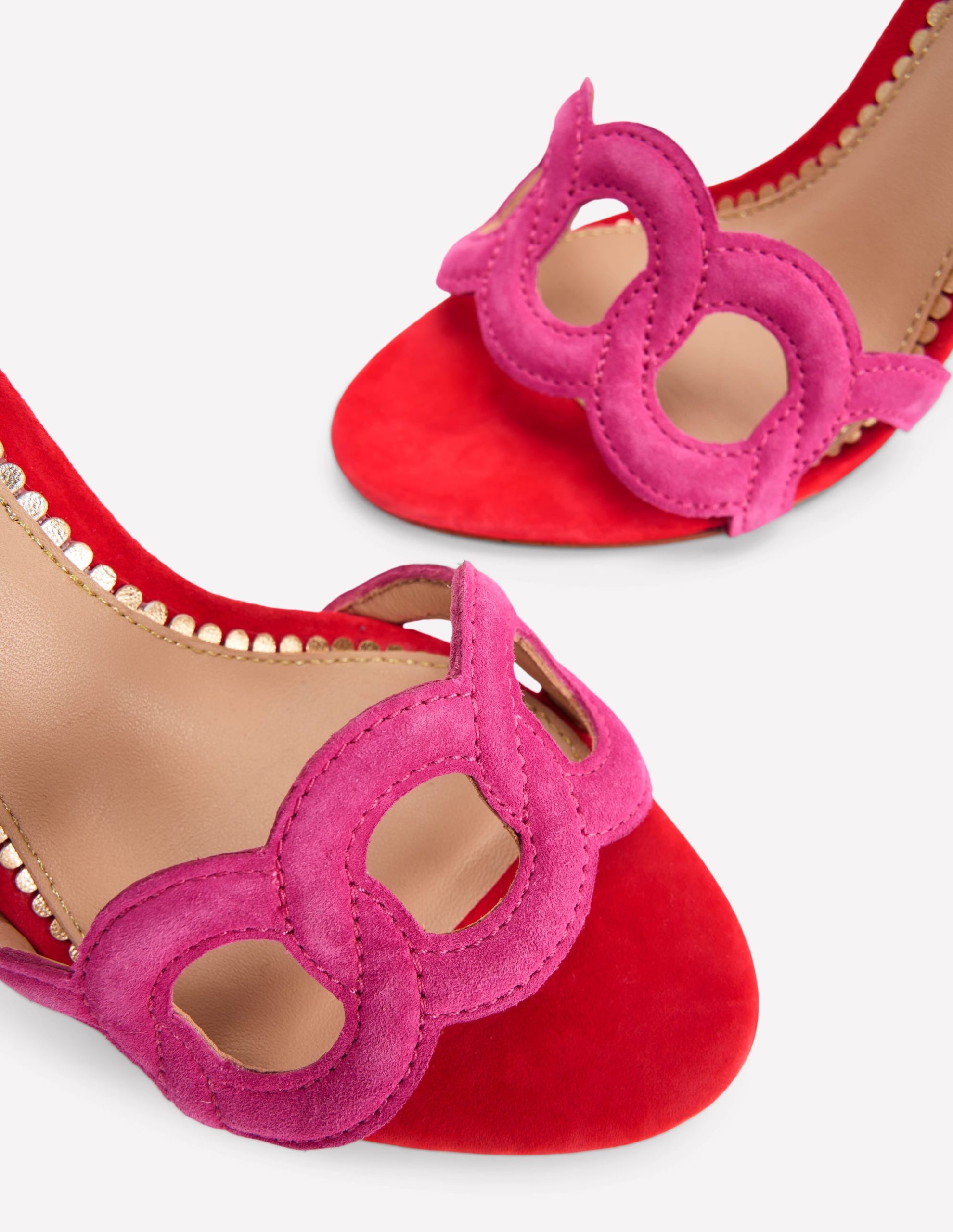 Circle Detail Heeled Sandal-Post Box Red/Sorbet Pink