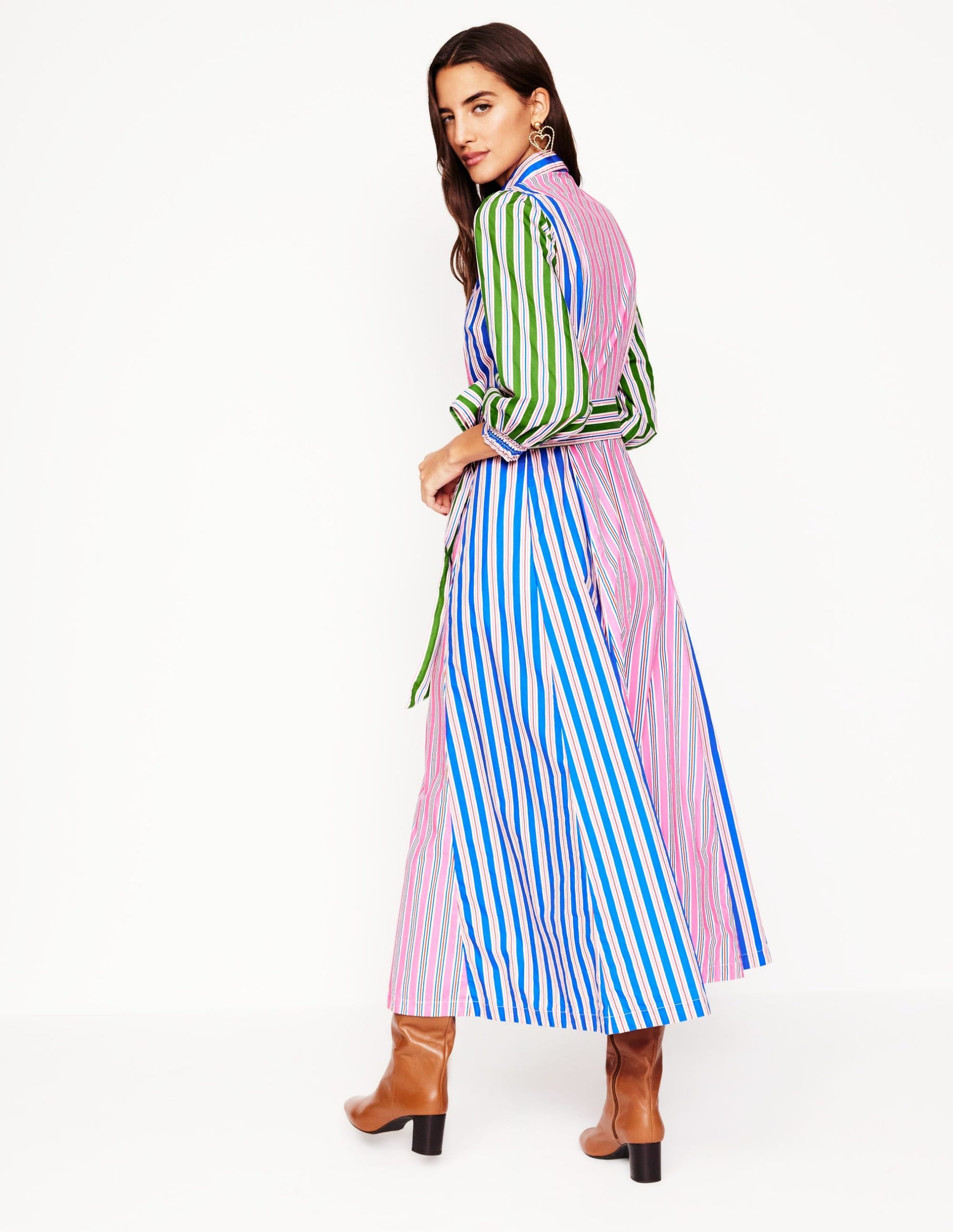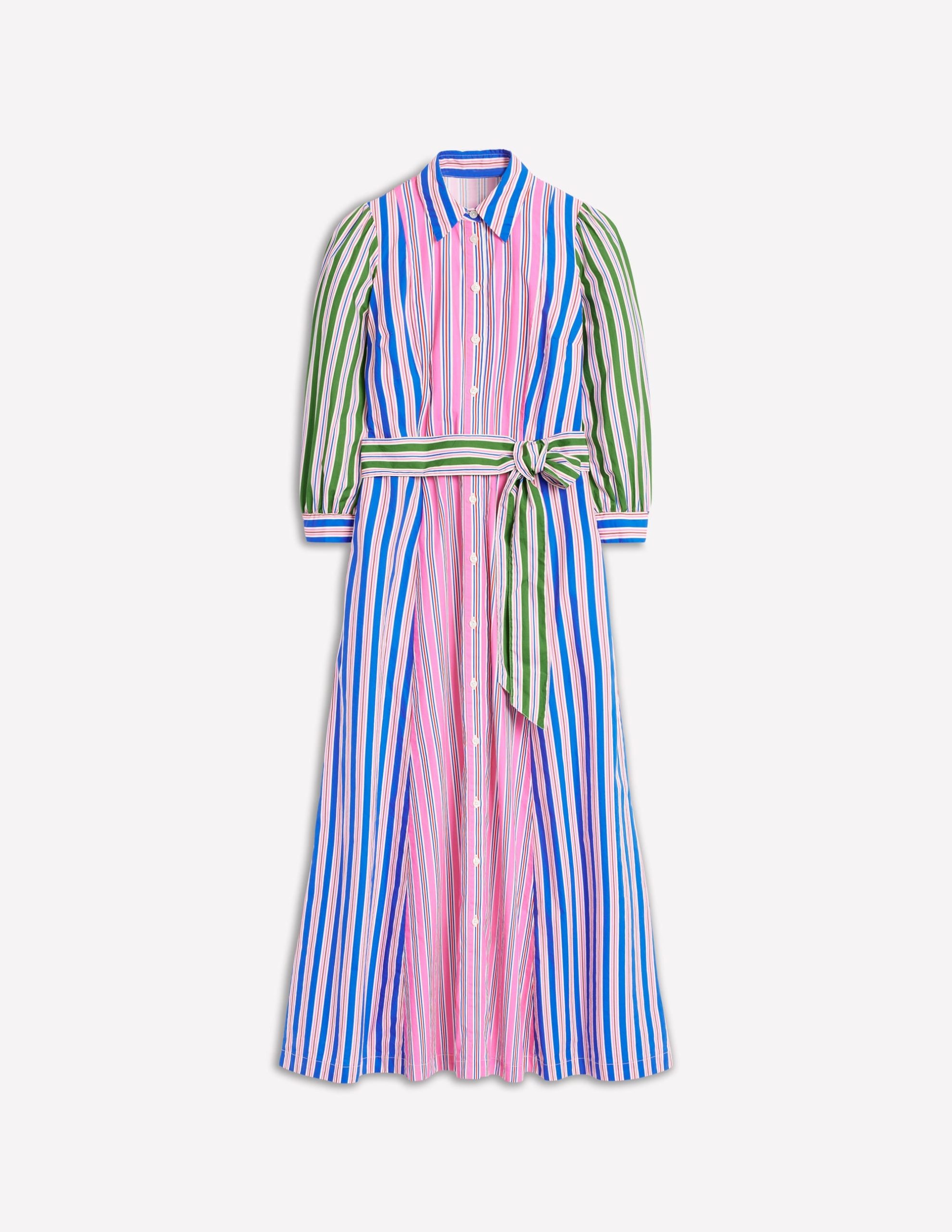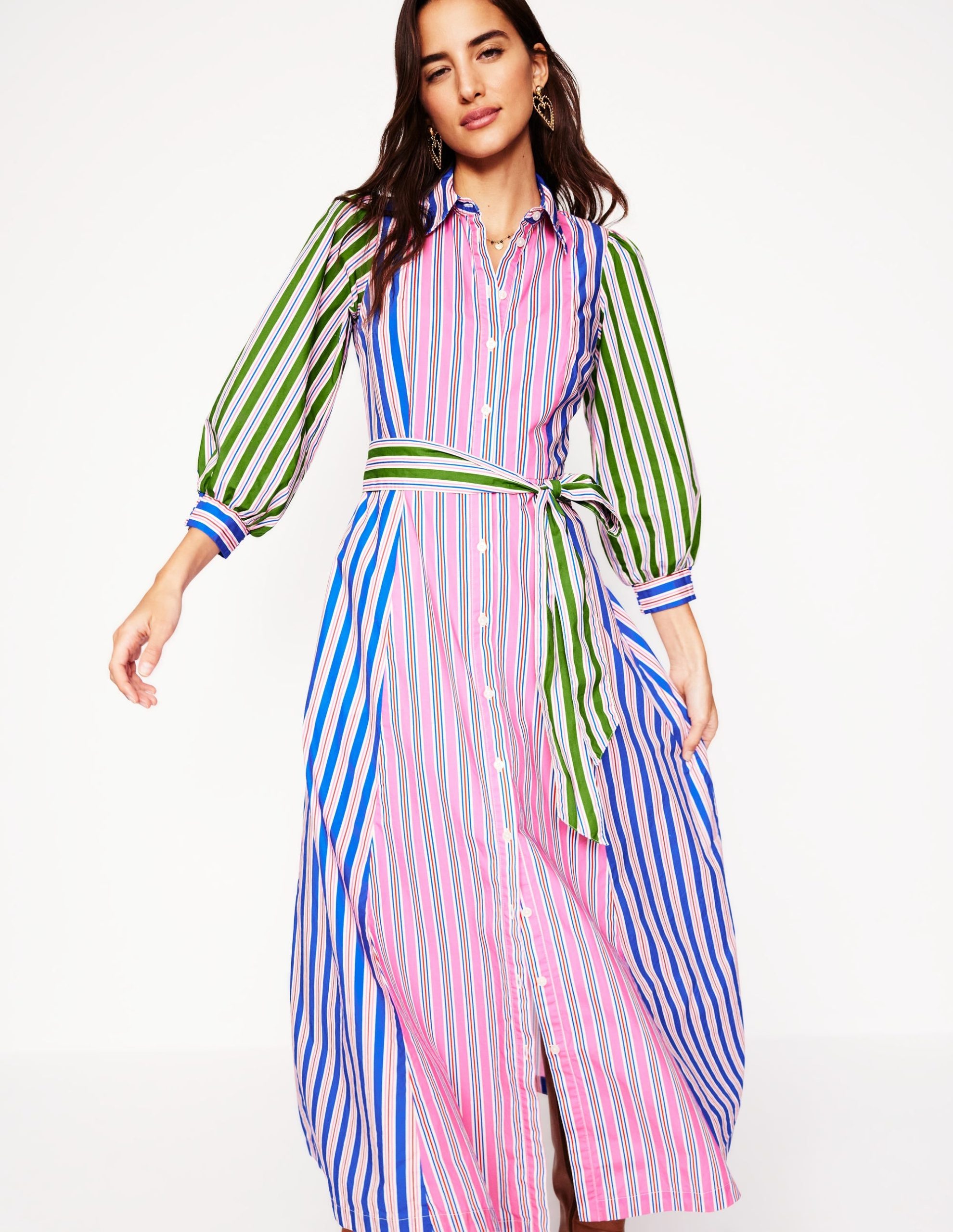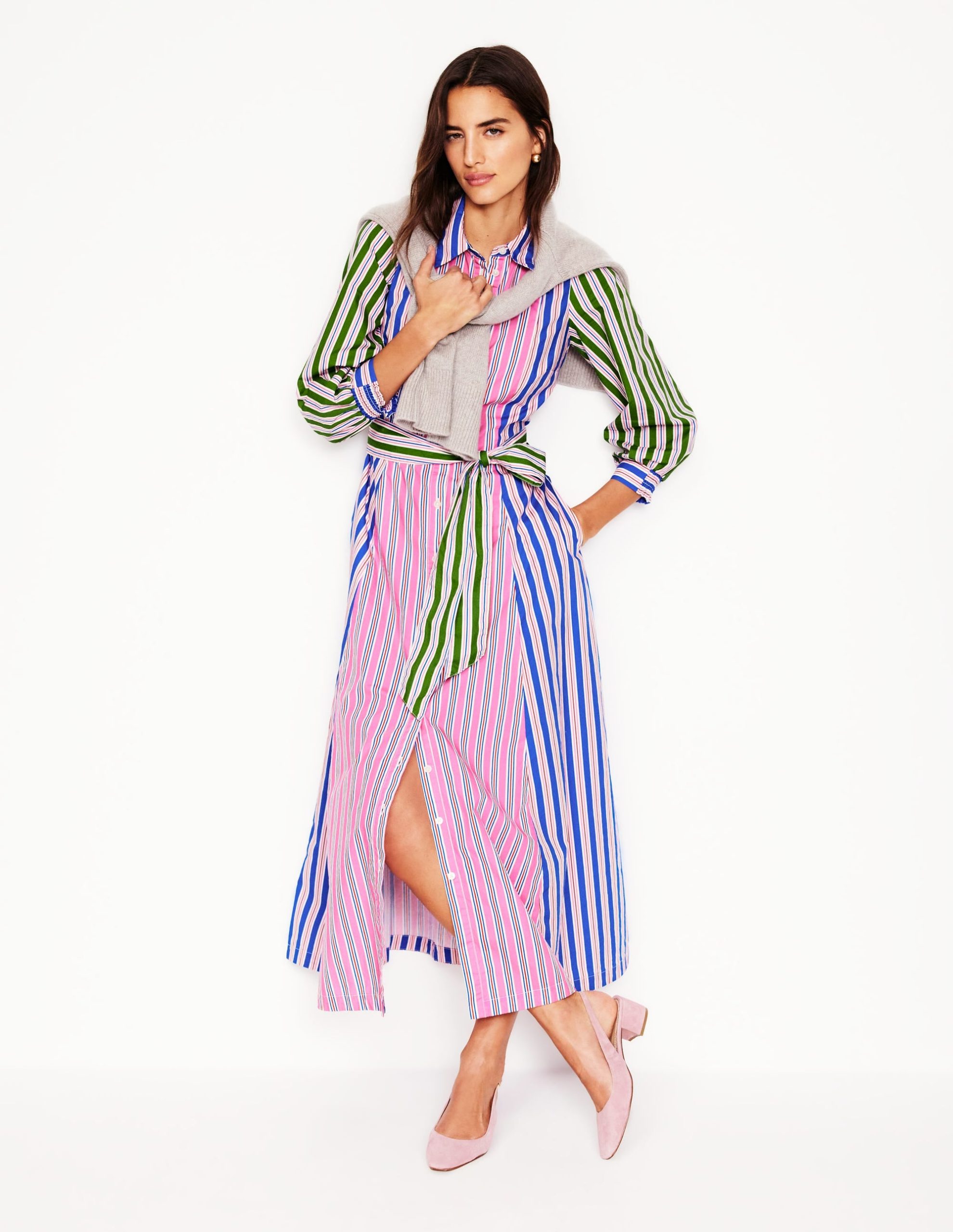 Clara Cotton Shirt Dress-Pink Rose. Red Stripe