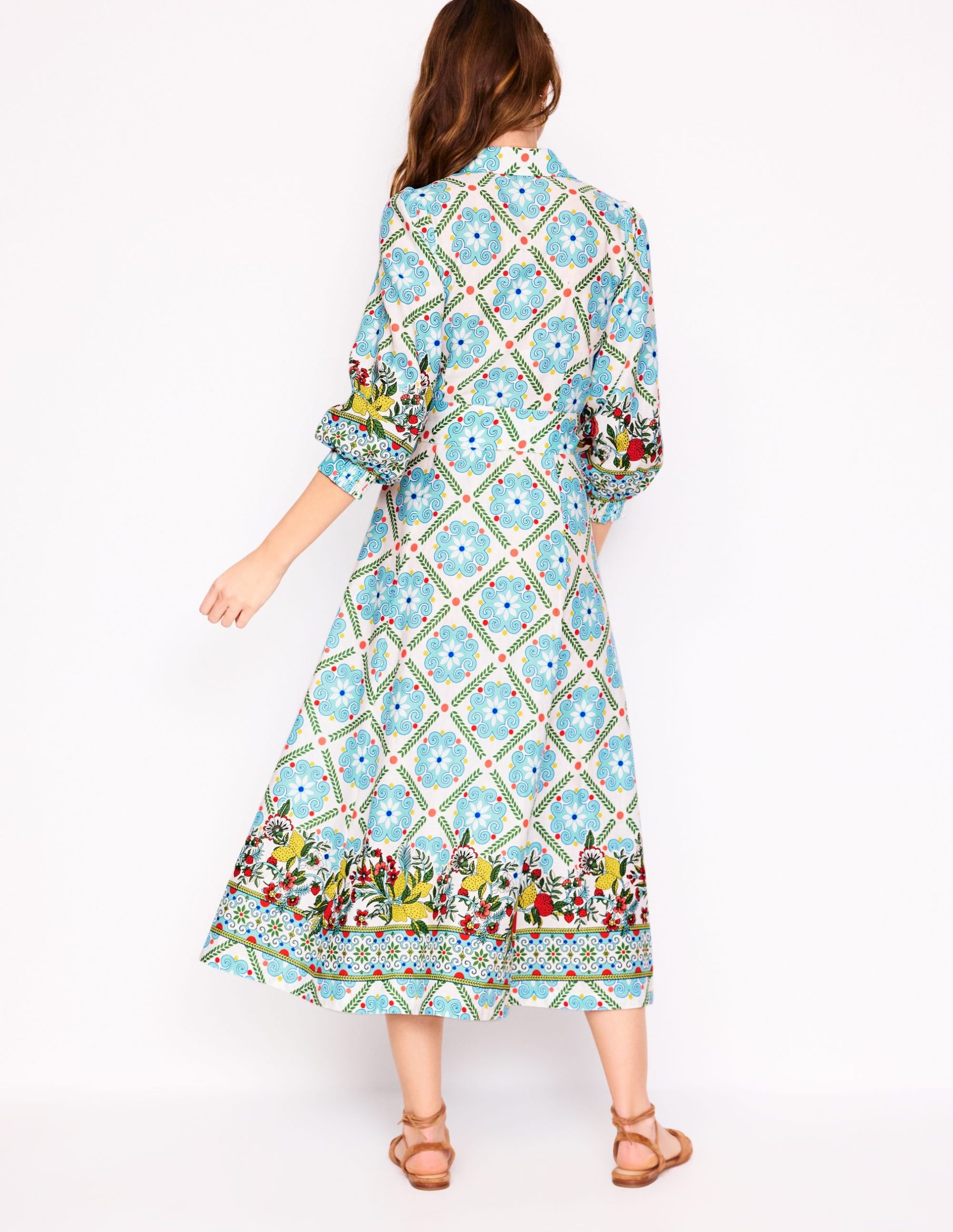 Clara Linen Blend Shirt Dress-Multi. Citrus Vine Tile