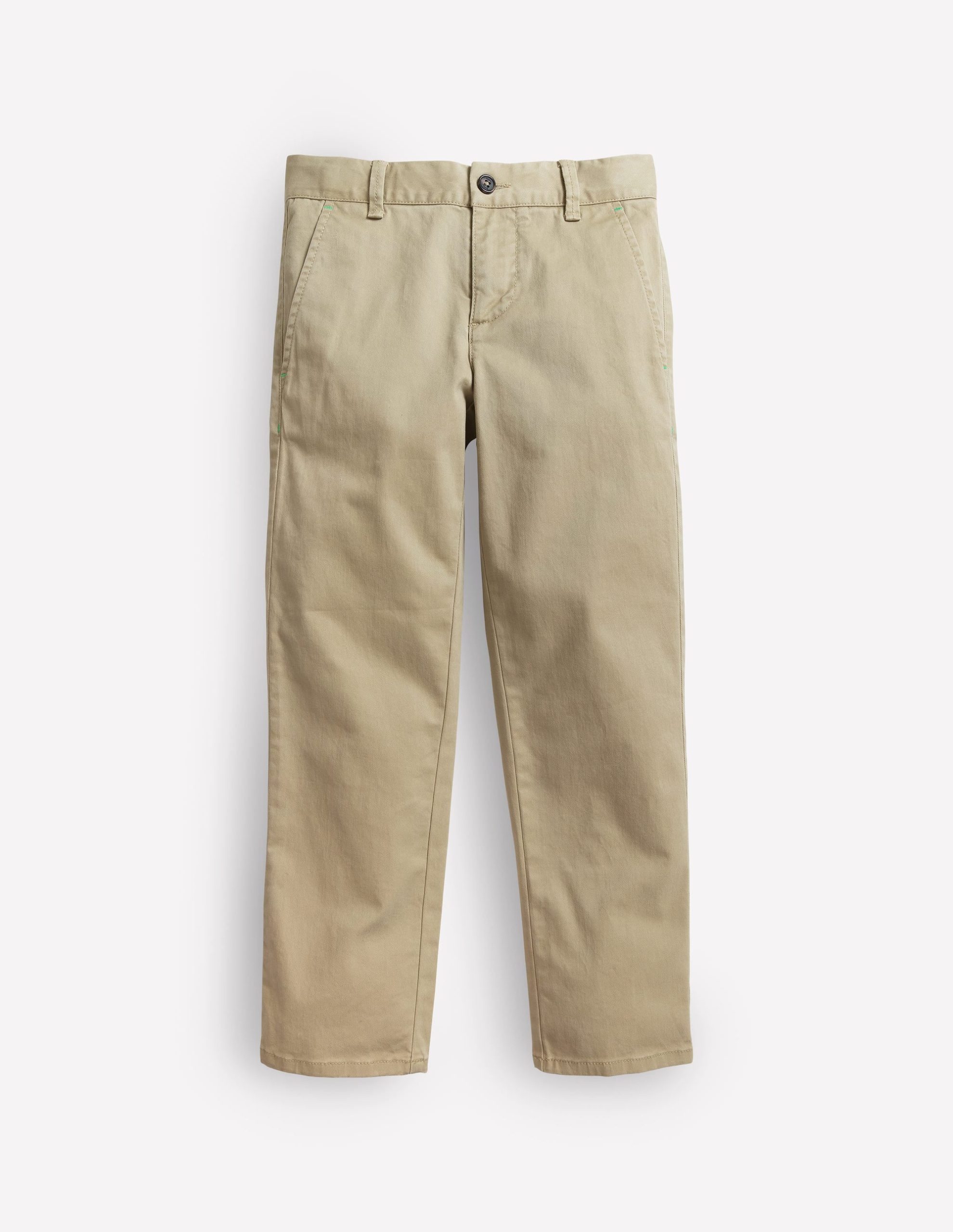 A relaxed fit and a hint of stretch keep these chinos comfy so Minis can run around all they want and still impress the grown-ups with how smart they look.