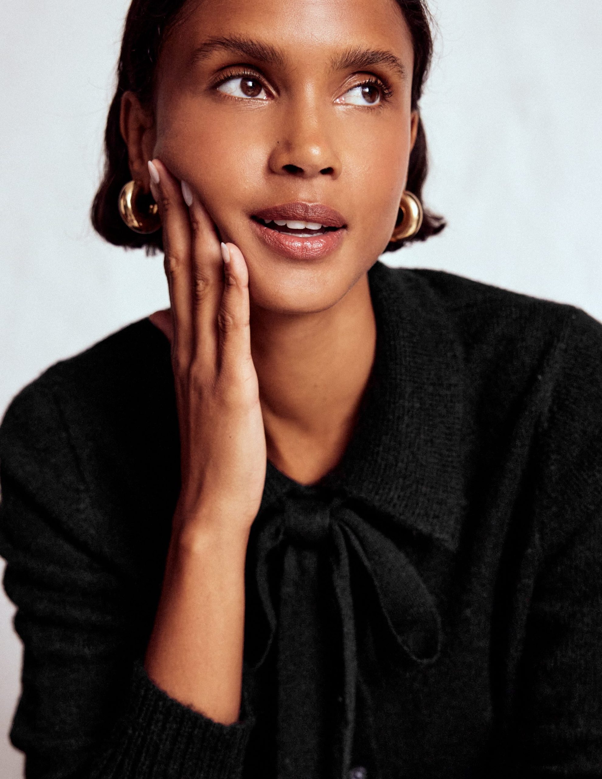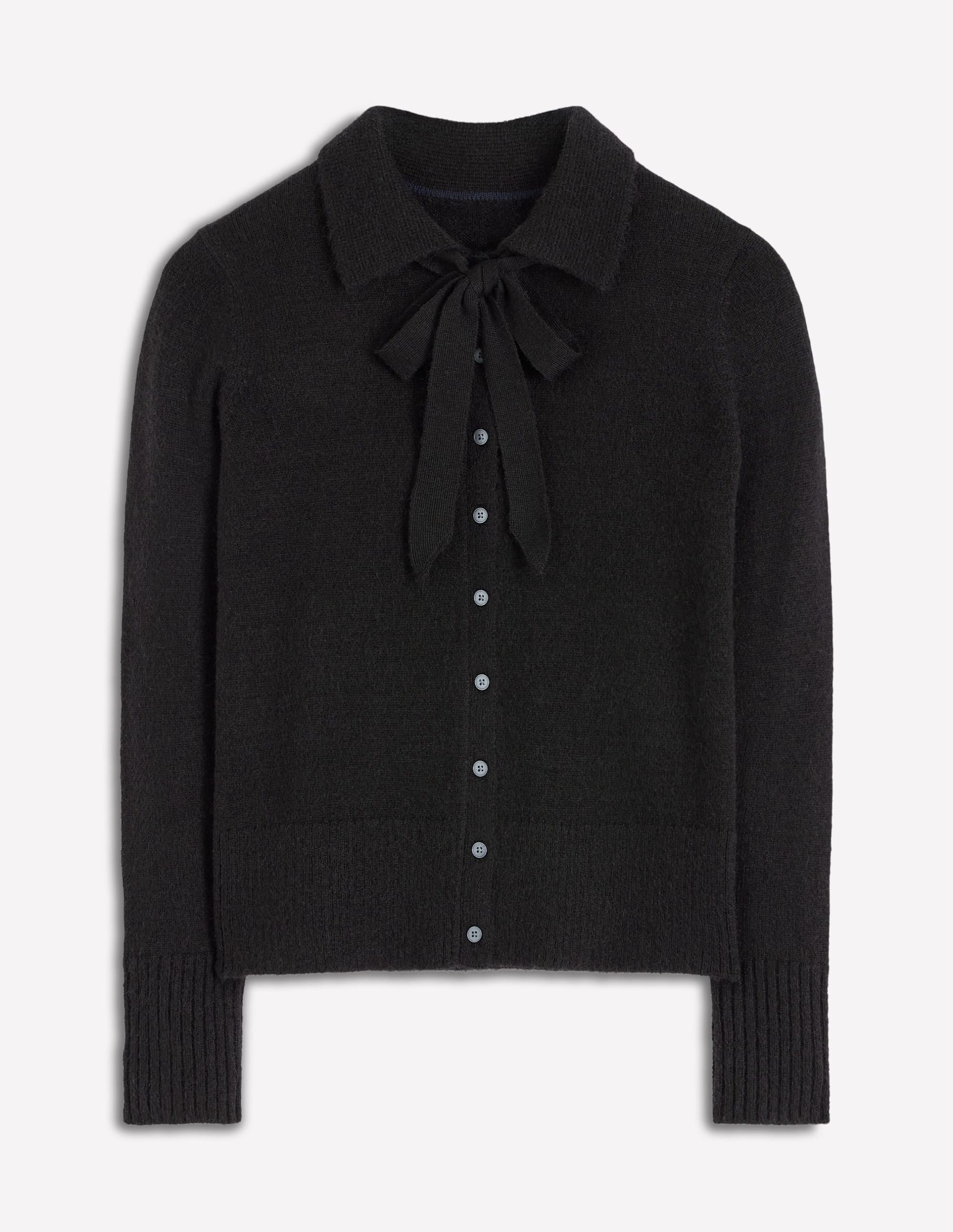 The collar. the tie. the delicate structure of the hem and cuffs??Let us introduce you to the kind of cardigan you wear to afternoon tea. even if you order an iced matcha.