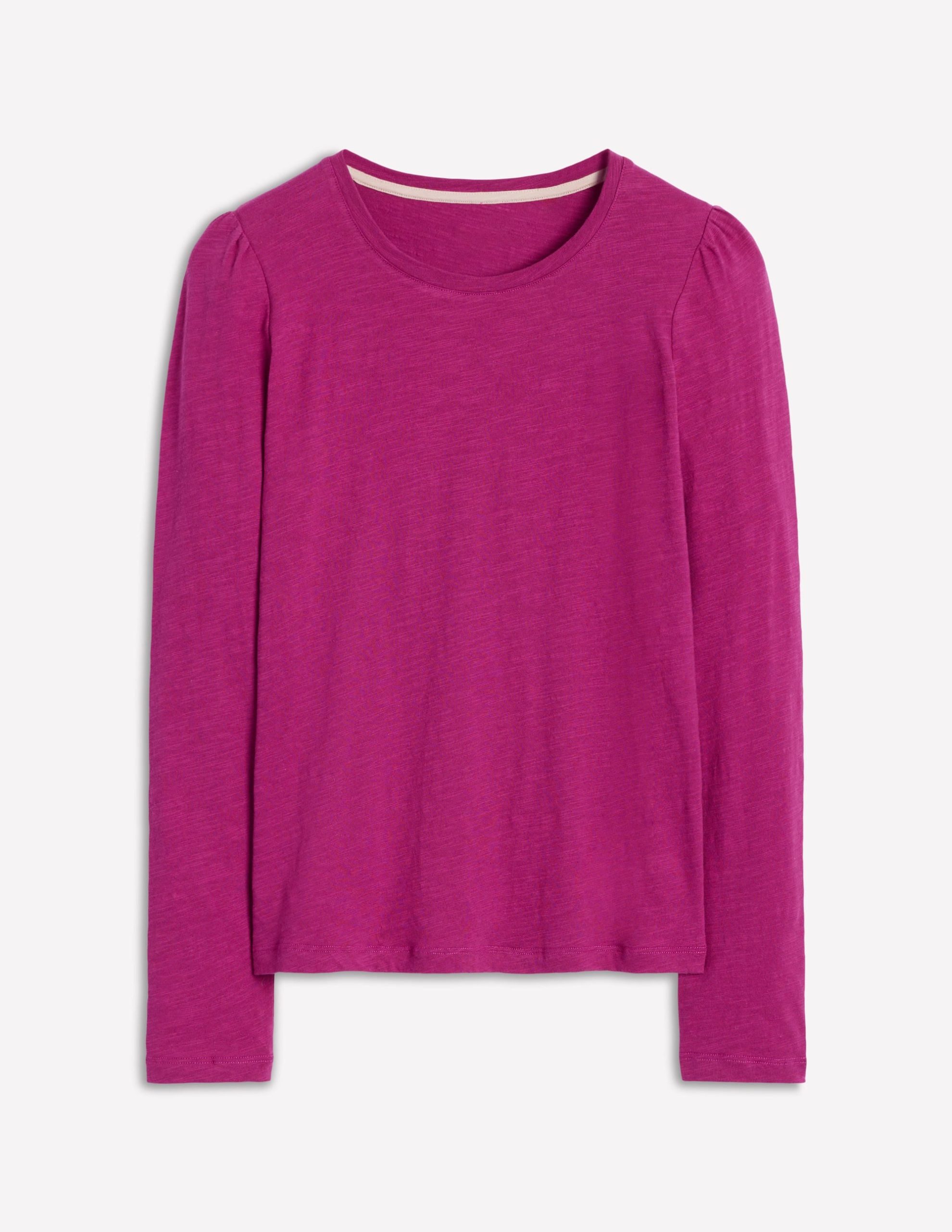 Cotton Crew Long Sleeve Top-Rich Magenta