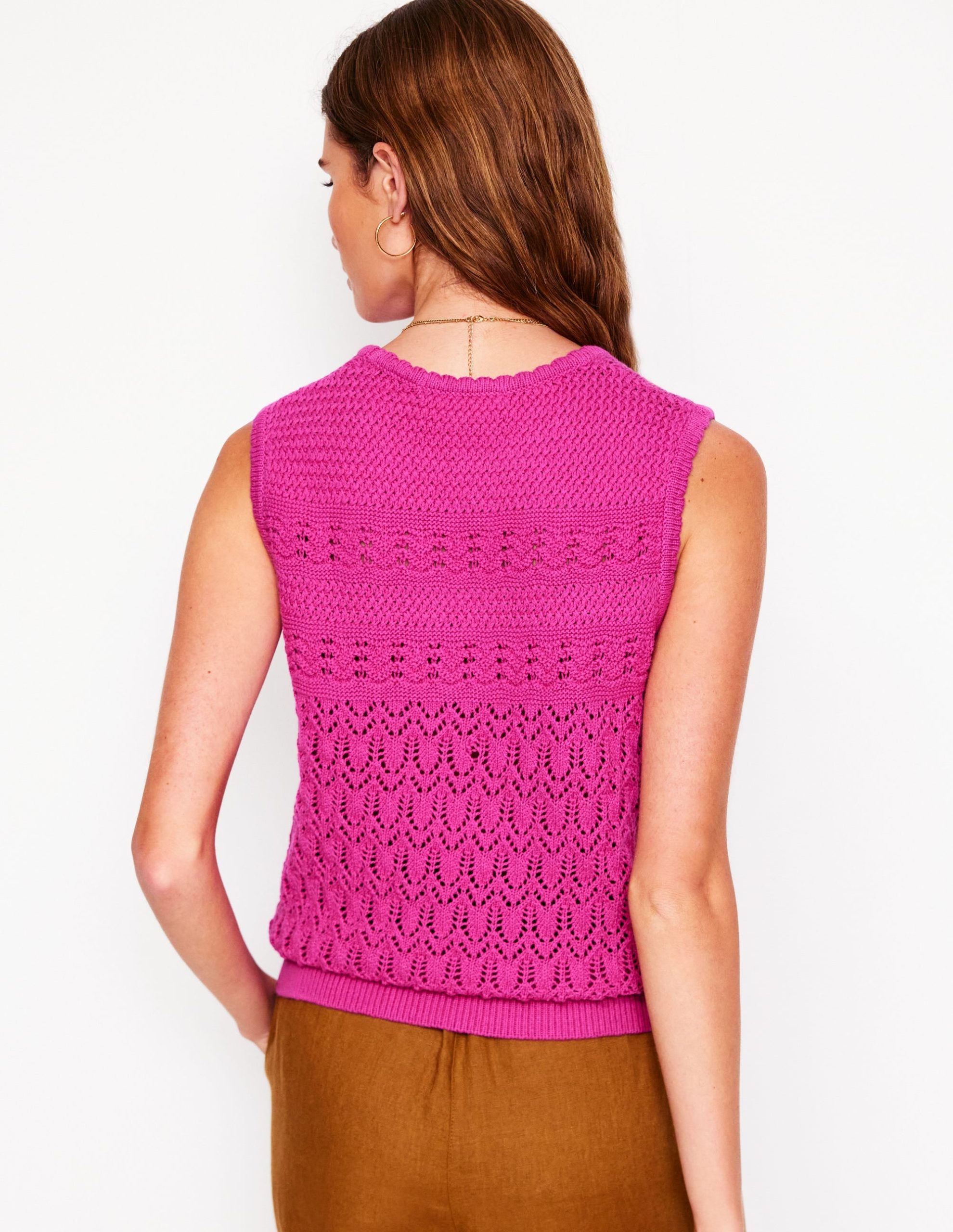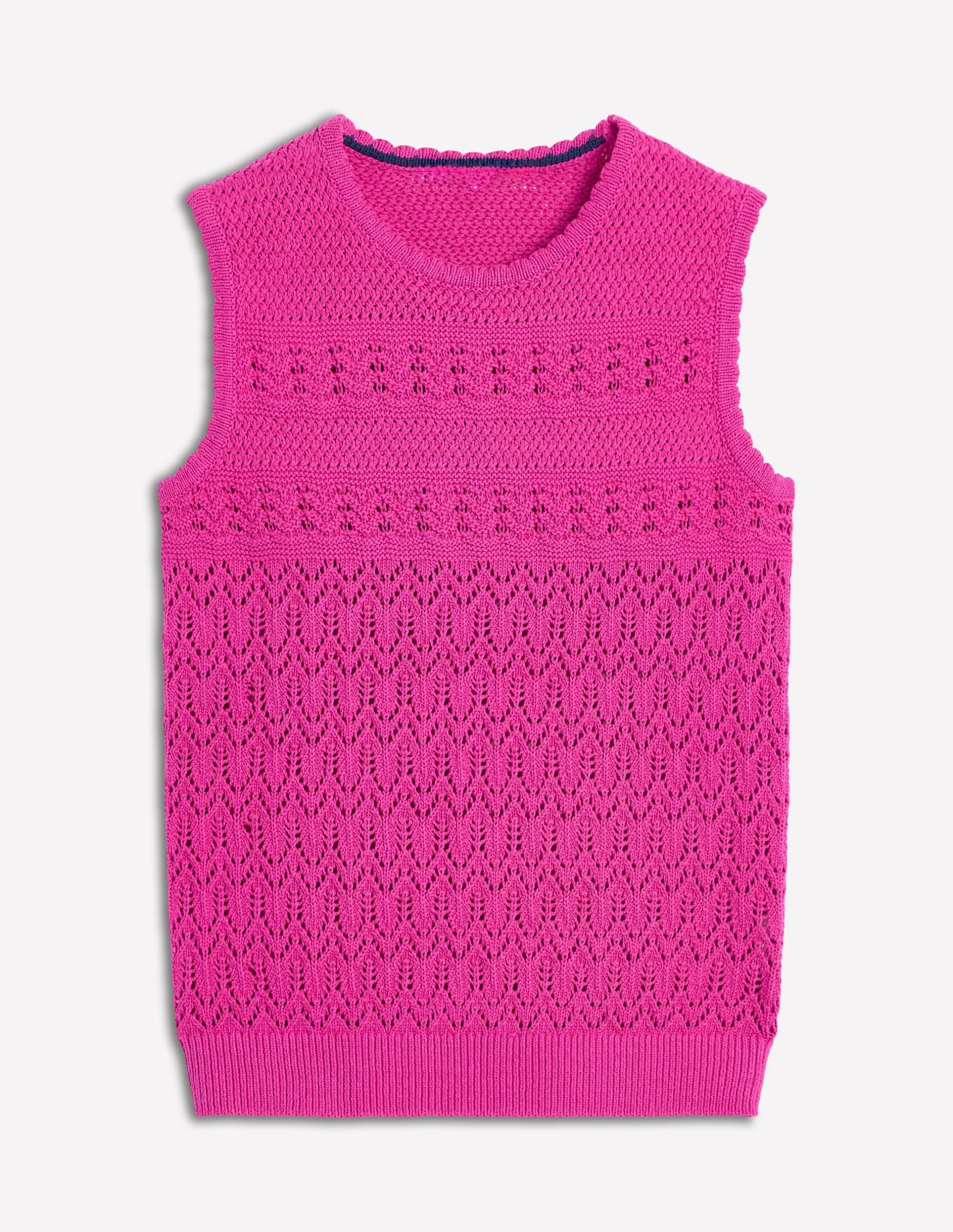 The go with anything go-to top for summer. The Elodie’s stitch detail and sleeveless shape sits pretty with jeans. linen wide-leg trousers and all your skirts. Add a stack of necklaces to finish.