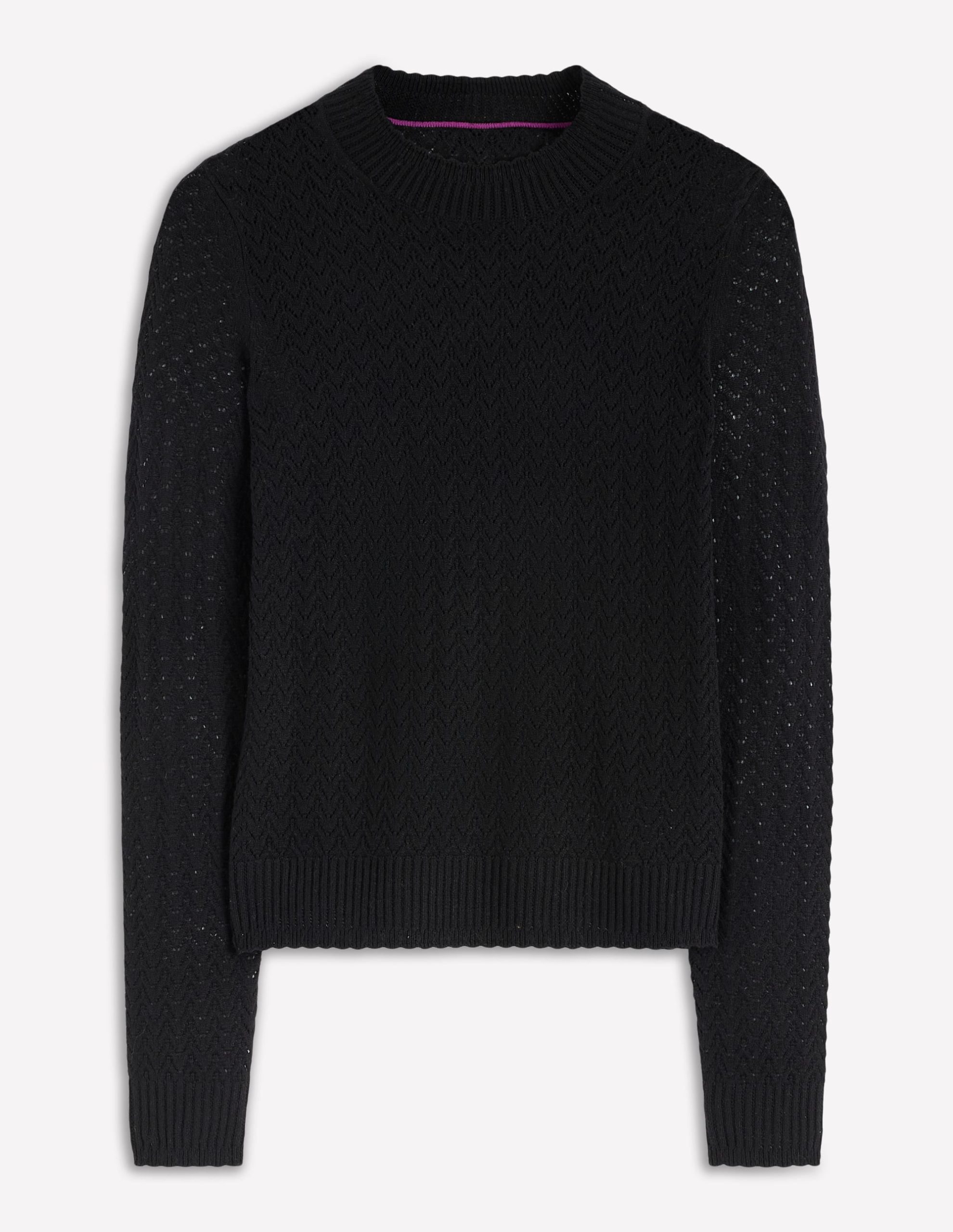 Pointelle makes the perfect light layer that spans the seasons. and our Diane jumper is ready in a variety of warm tones to adorn any outfit. Bonus points for the scallop trim and fitted shape.