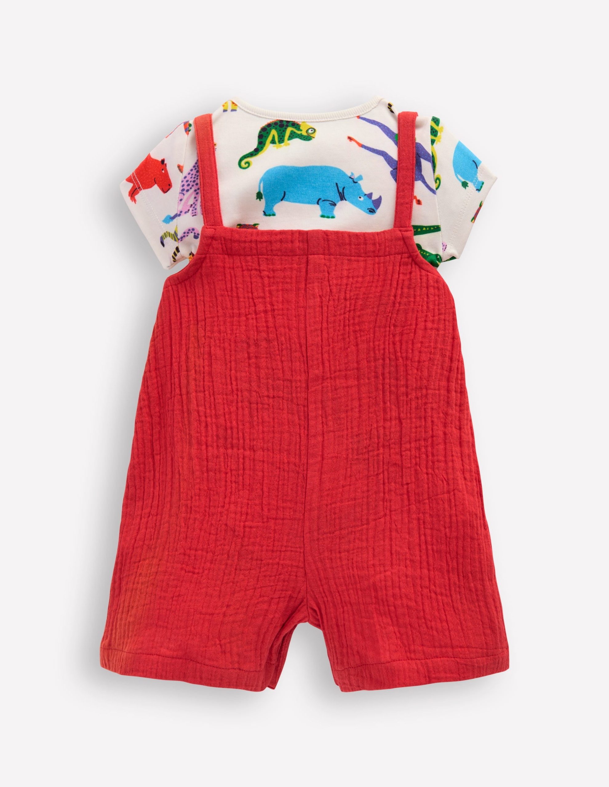Double Cloth Dungaree Set-Poppy Red Jungle