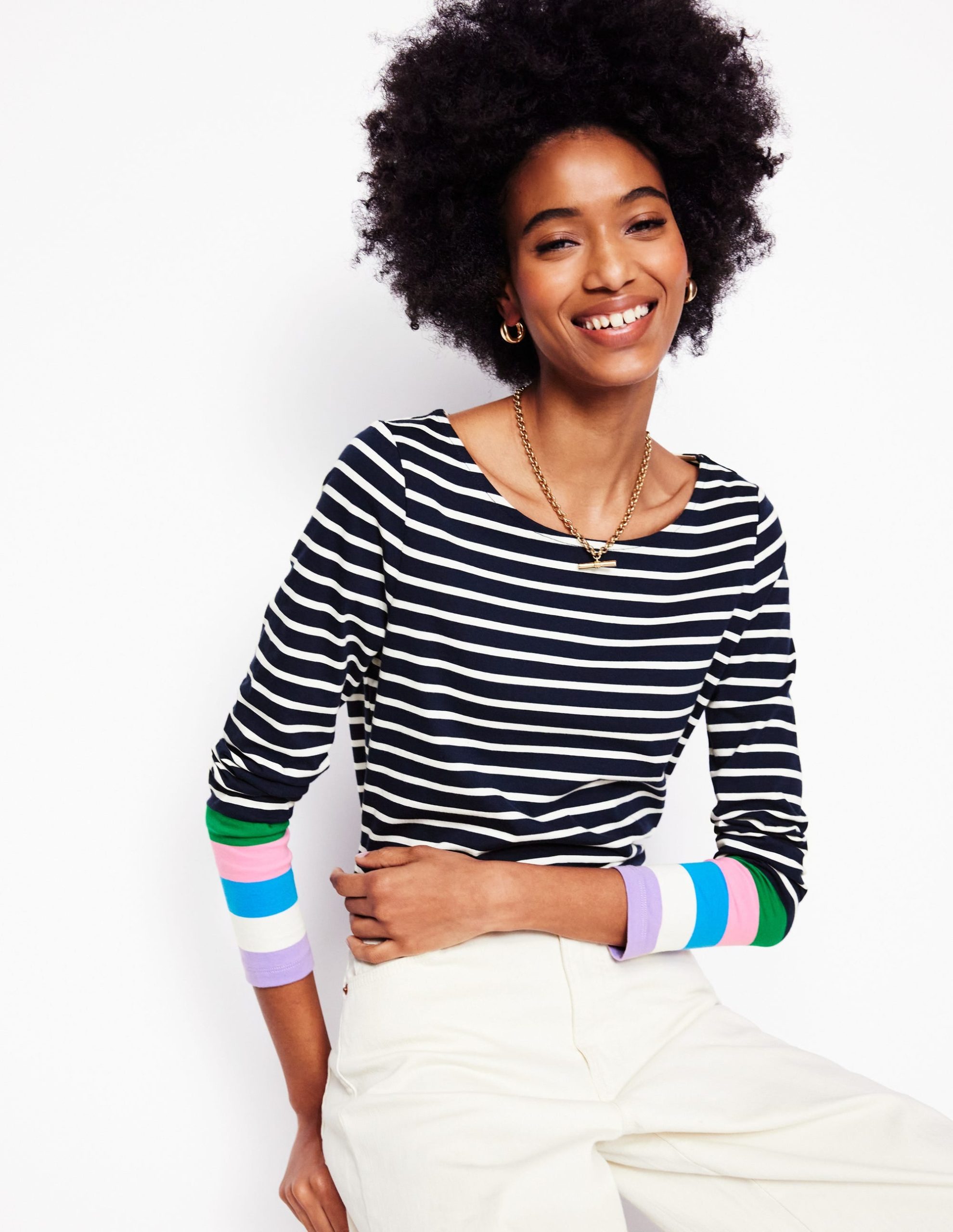 Ella Long Sleeve Breton-Navy Multi Cuff