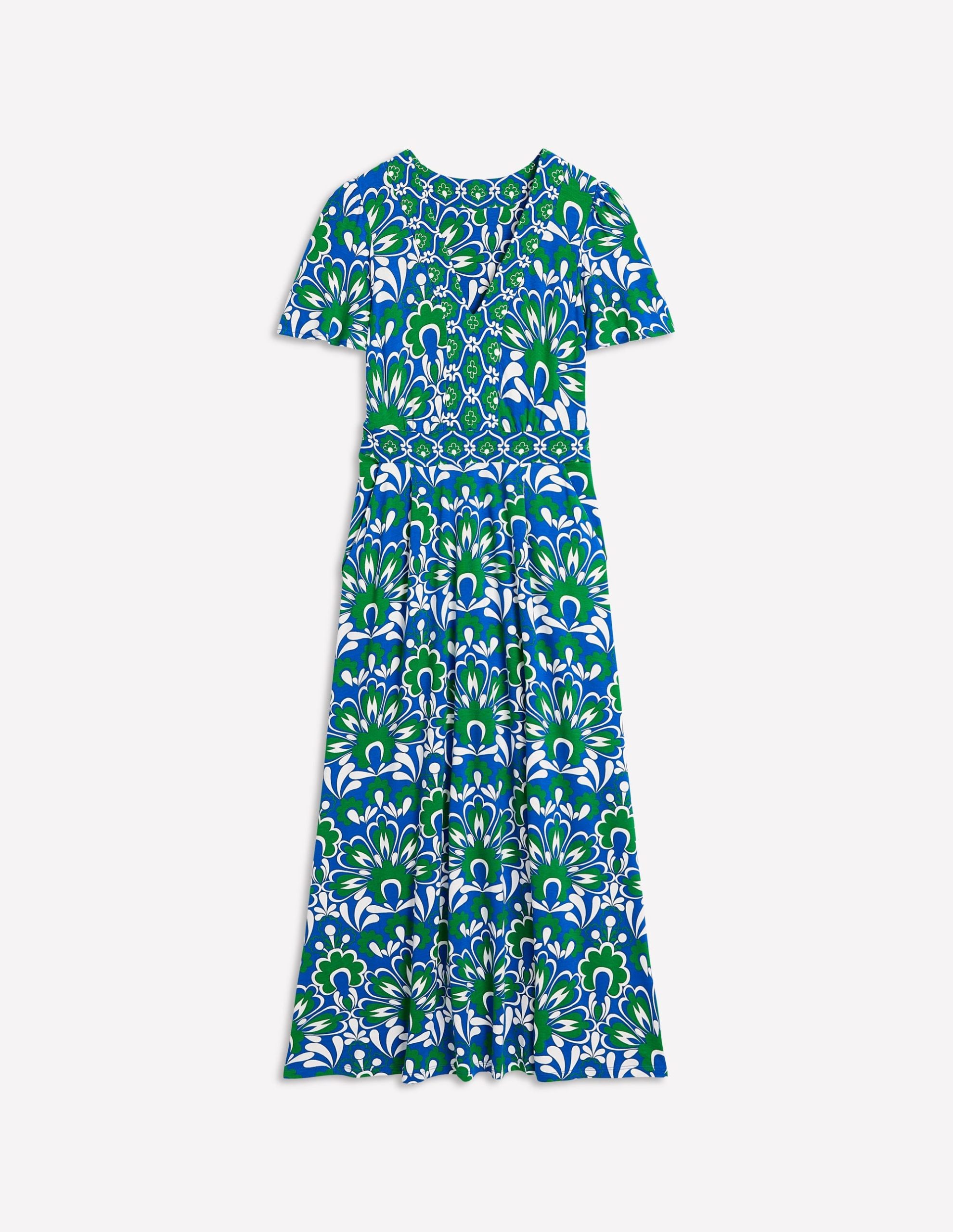 Ellie Flutter Maxi Tea Dress-Blue. Decorative Dandelion
