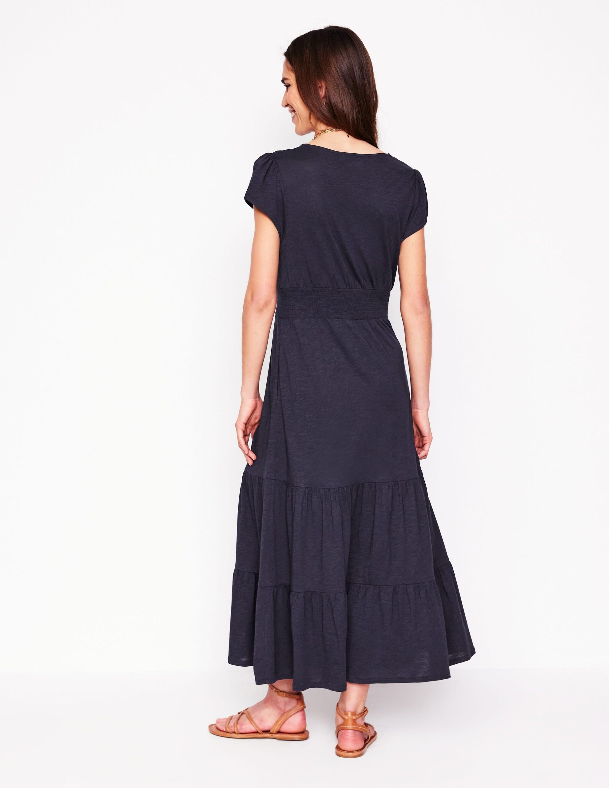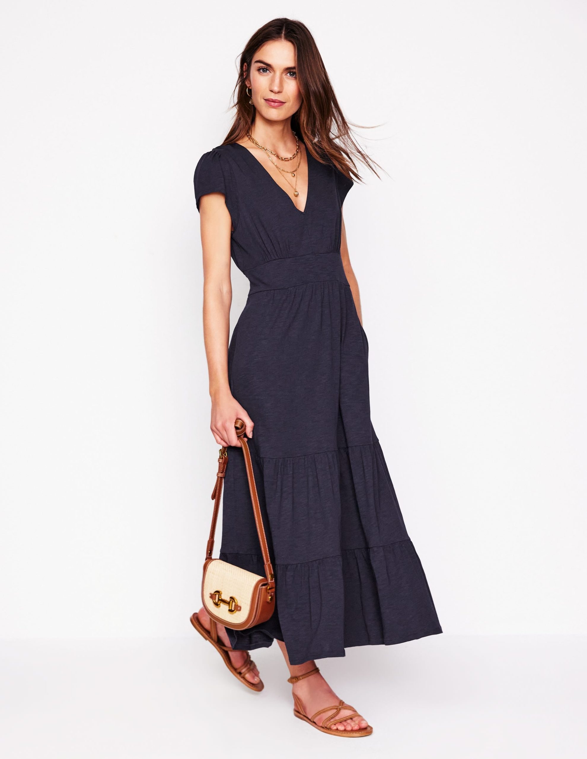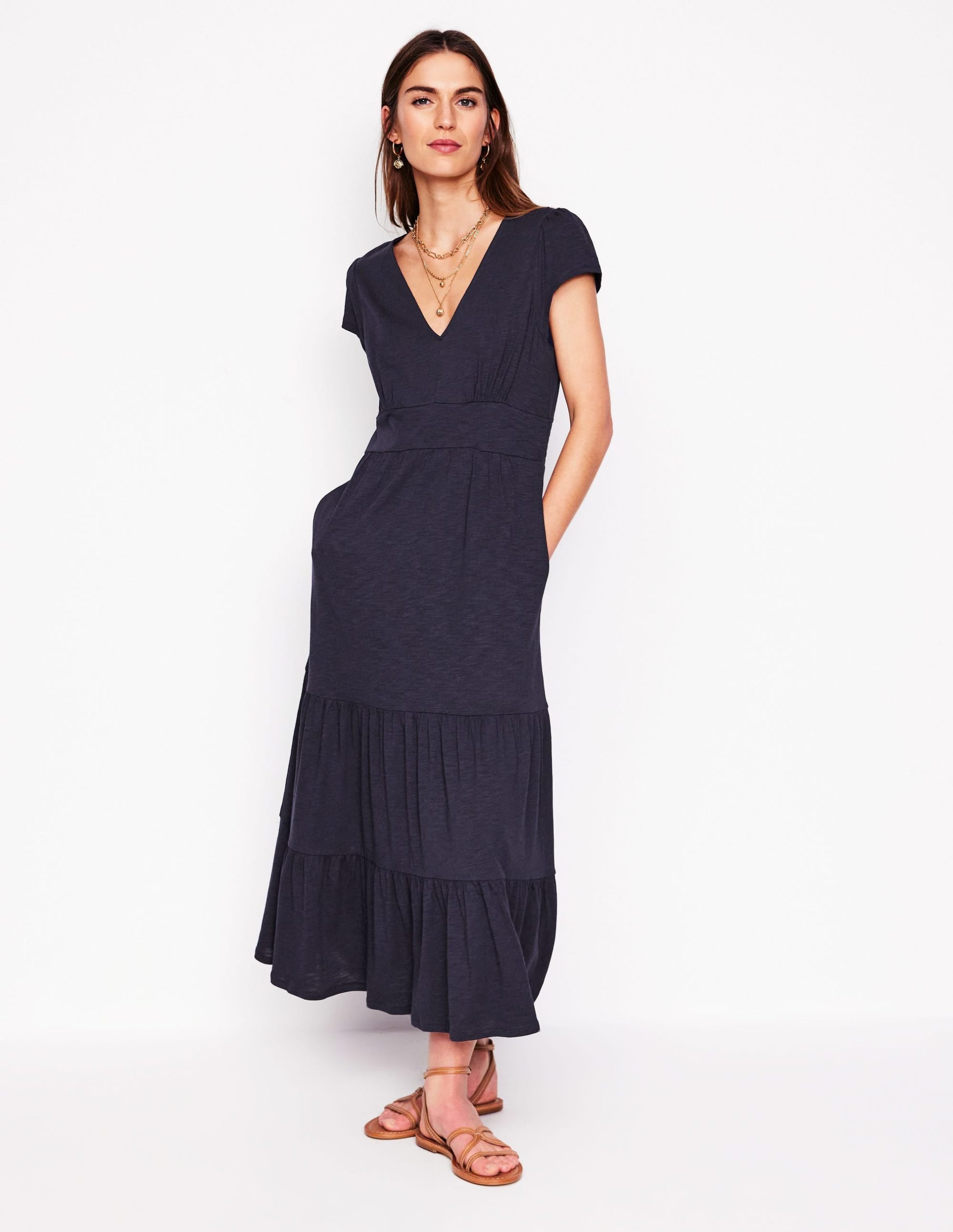 Our Elara tiered midi dress has all the Boden signatures ?C pockets. soft jersey and a flattering fit ?C to make it a firm favourite.