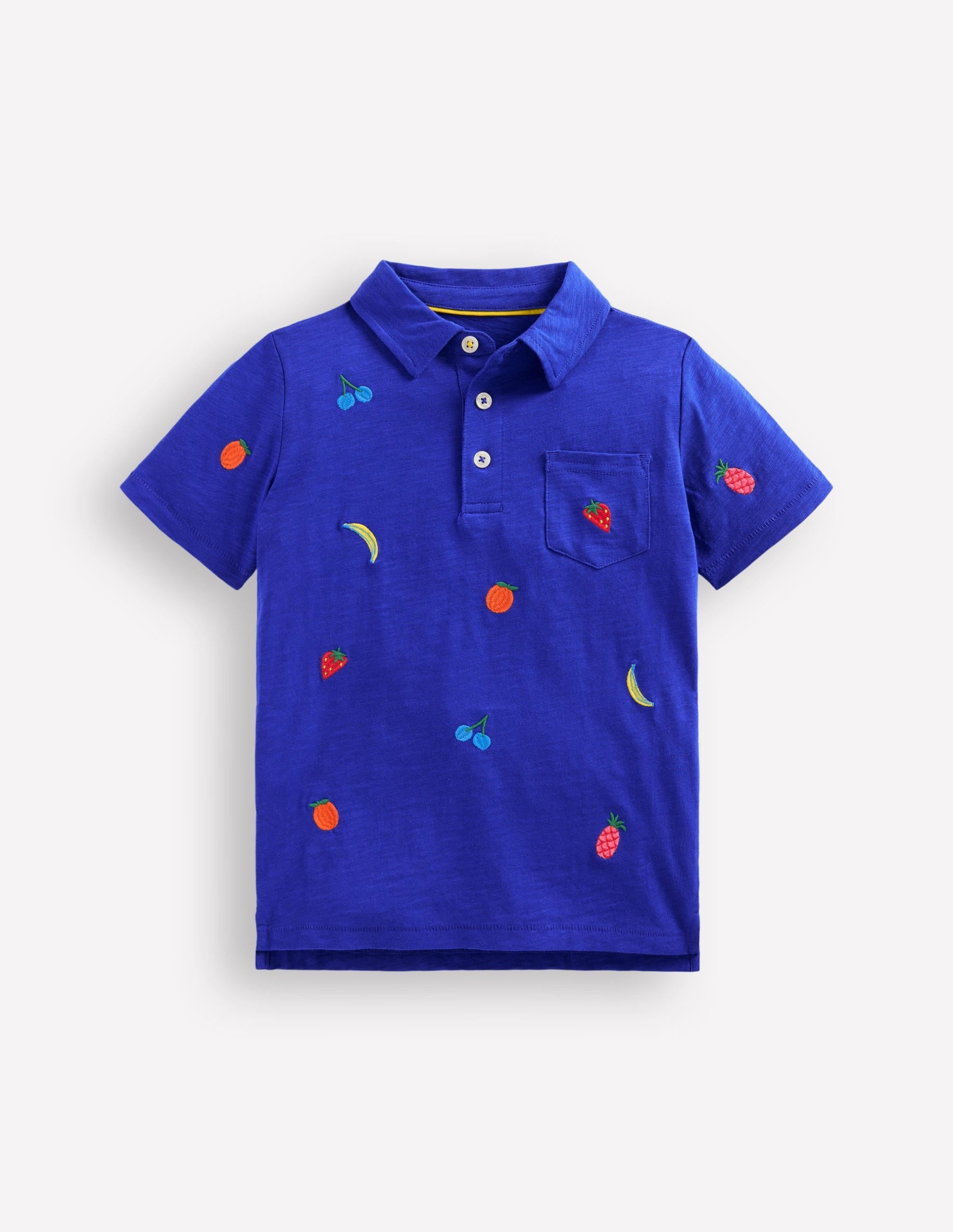 Embroidered Slub Polo Shirt-Fruit Embroidery