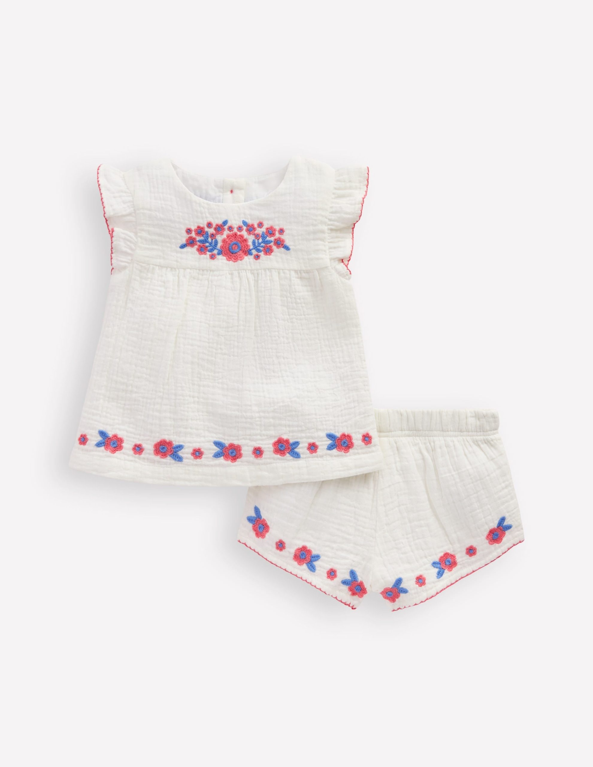 Embroidered Woven Play Set-White Embroidered