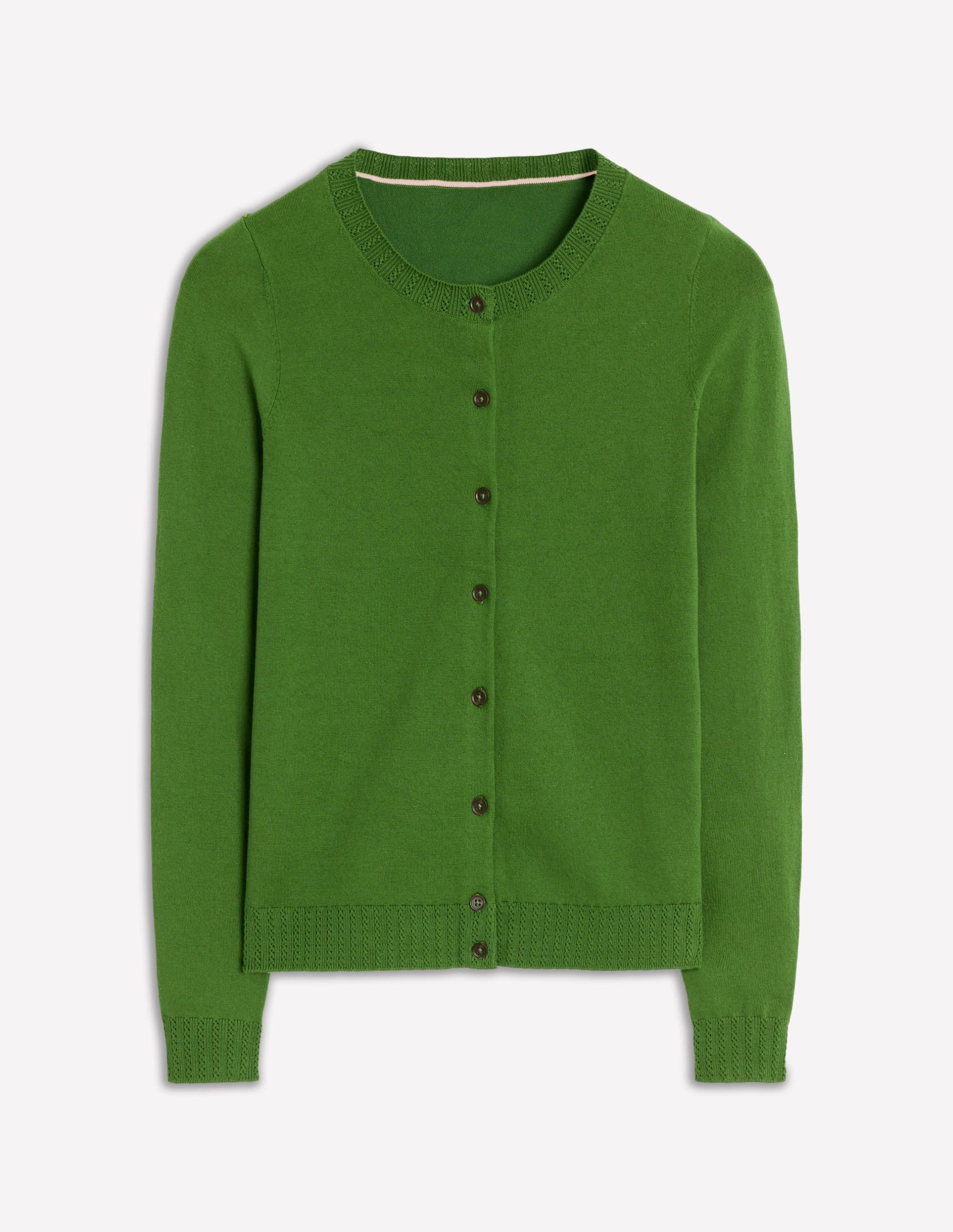 Spun from soft cotton and with intricate trim detail at the hemline. neckline and cuffs. our Emilia cardigan is a layer that offers a polished finish. Why not choose one in every colour?