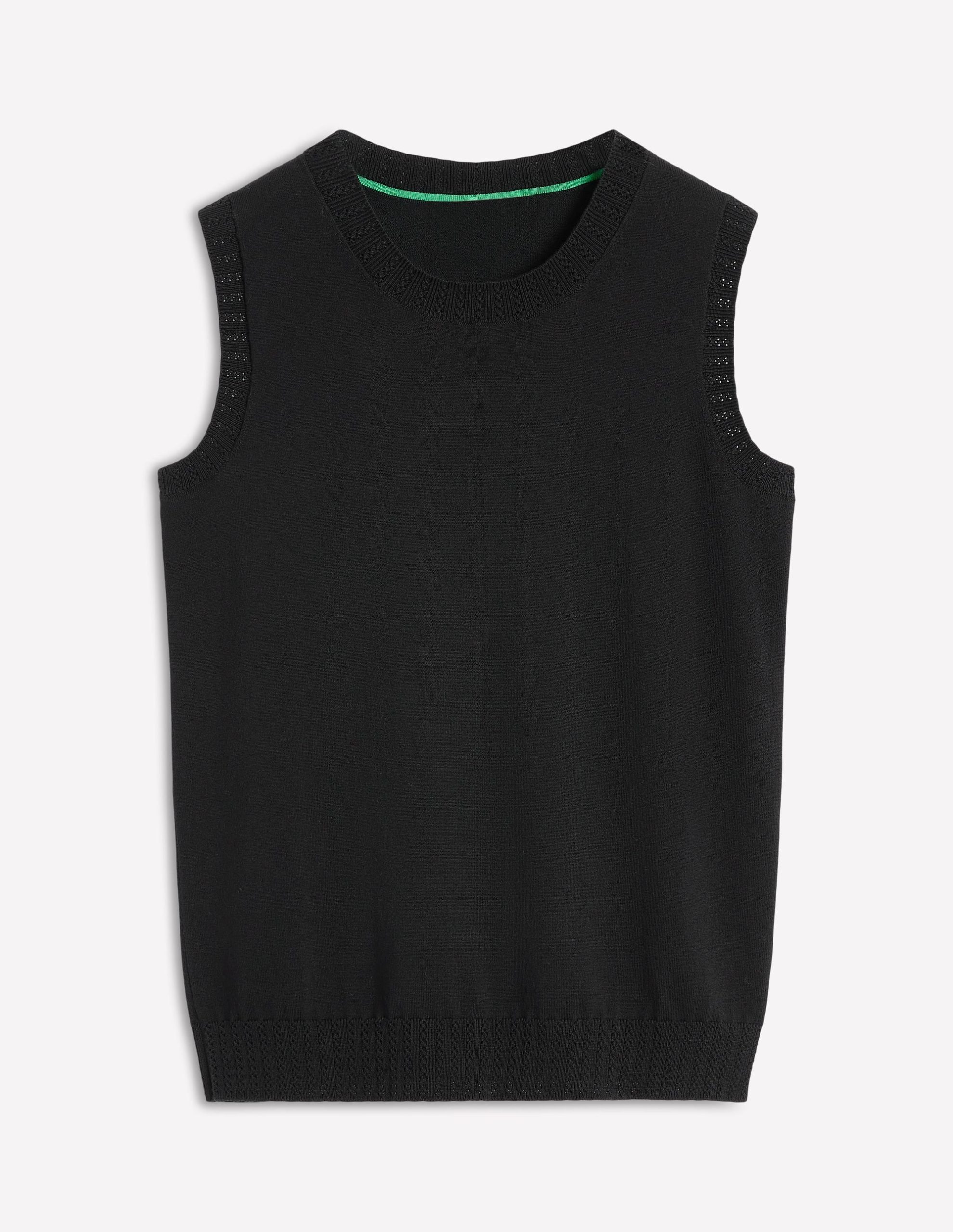 For those who love to layer. our Emilia cotton tank is a wardrobe staple. A fine knit with intricate detail at the neckline. it’s the perfect in-between layer for when the weather doesn’t know what it’s doing.