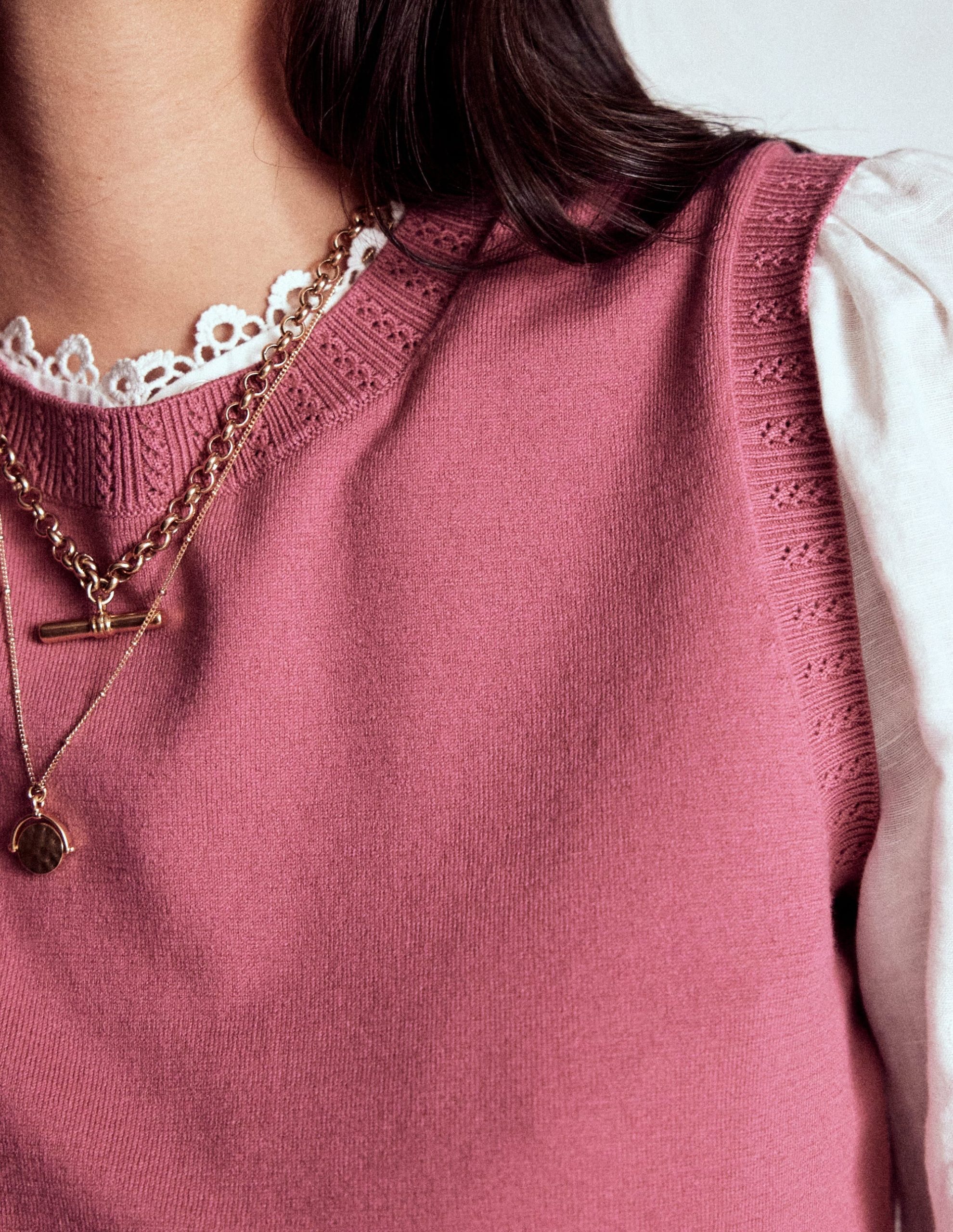For those who love to layer. our Emilia cotton tank is a season-spanning must-have. A fine knit with intricate neckline detail. it’s perfect for when the weather doesn’t know what it’s doing.