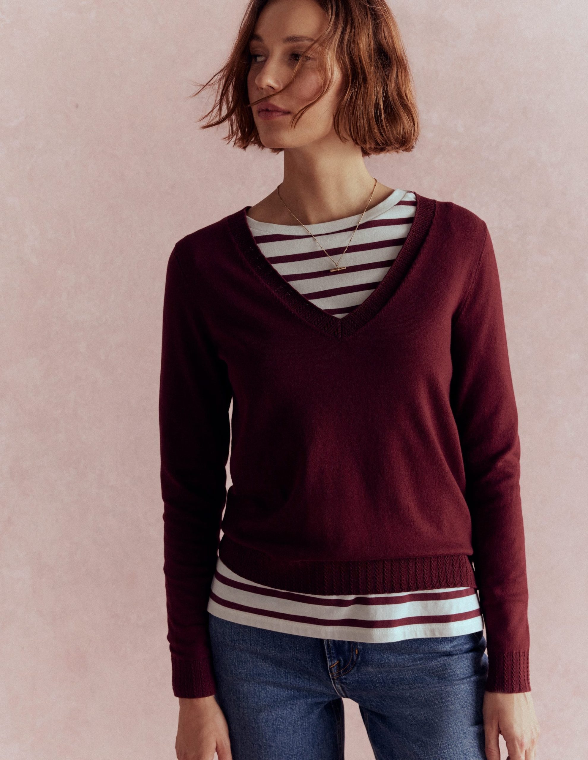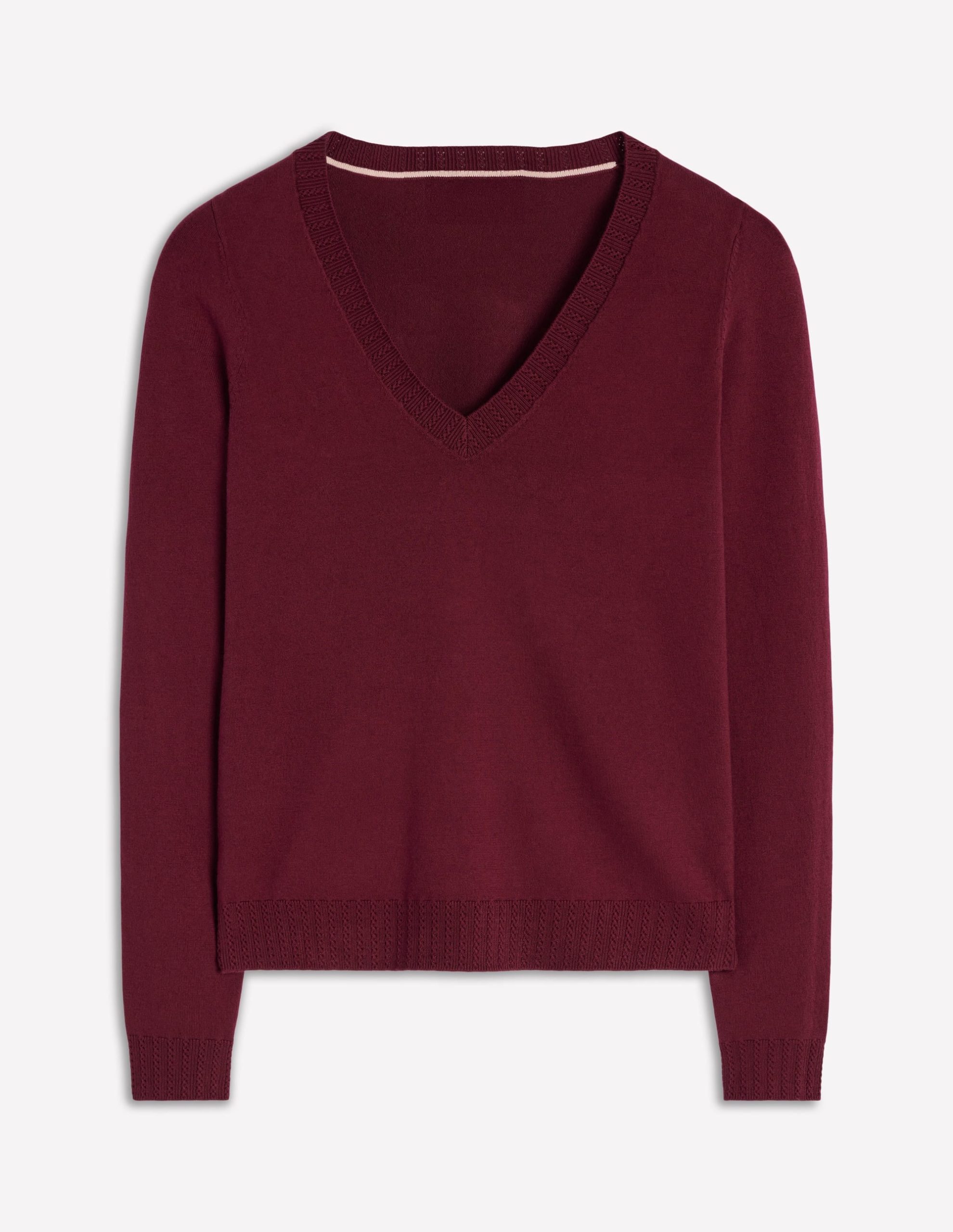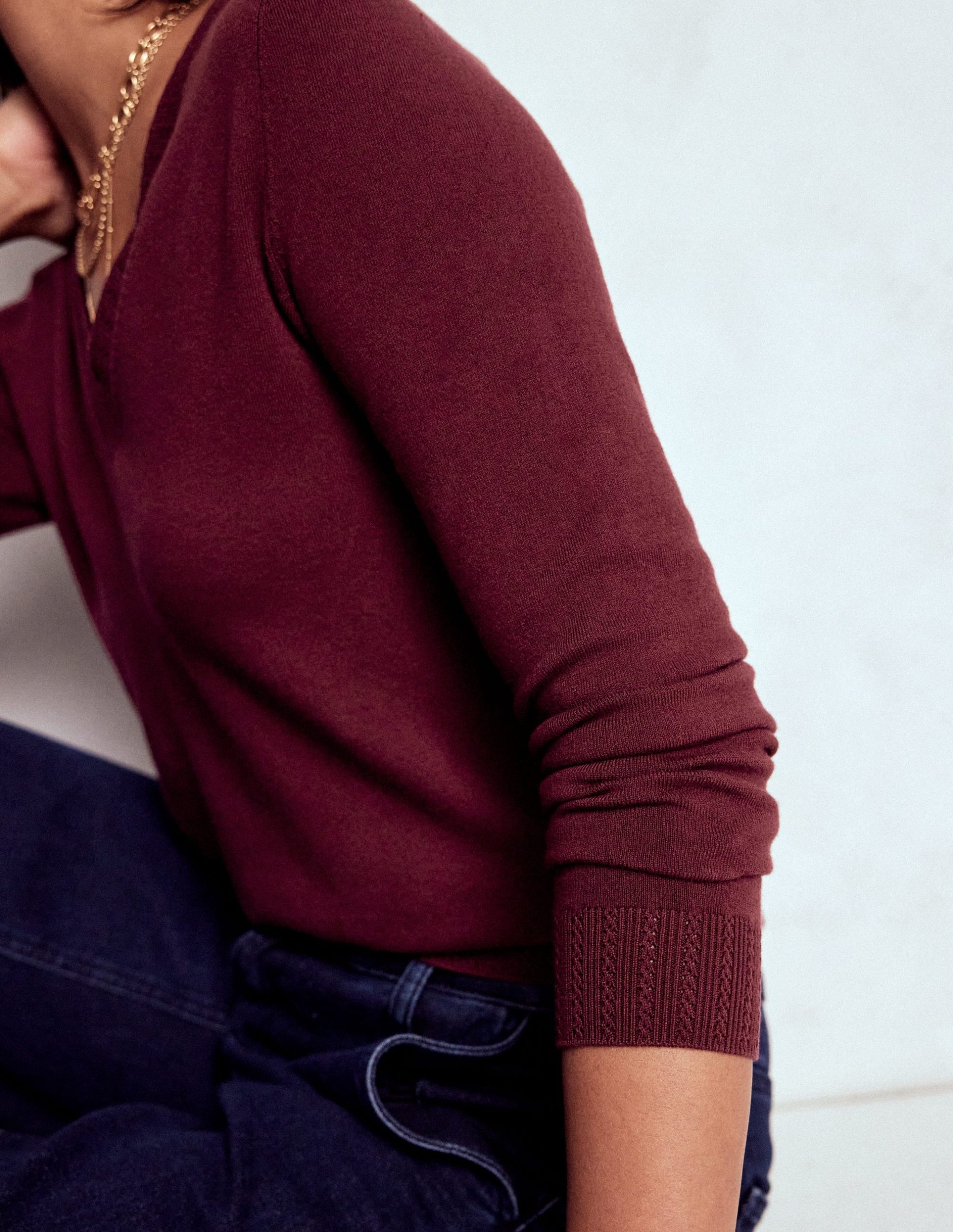 Emilia Cotton V-Neck Jumper-Deep Wisteria