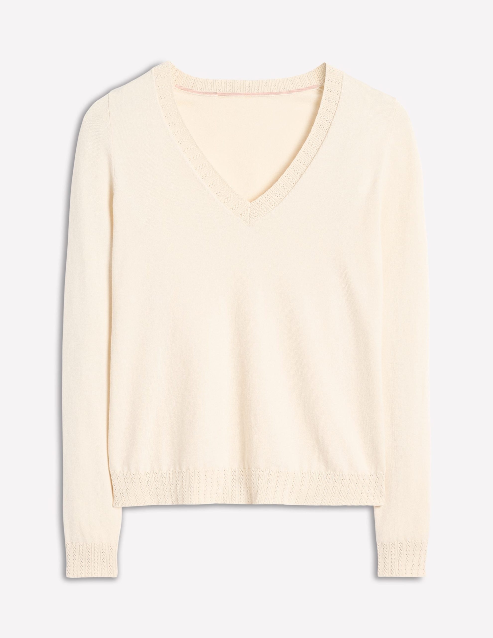 Emilia Cotton V-Neck Jumper-Warm Ivory