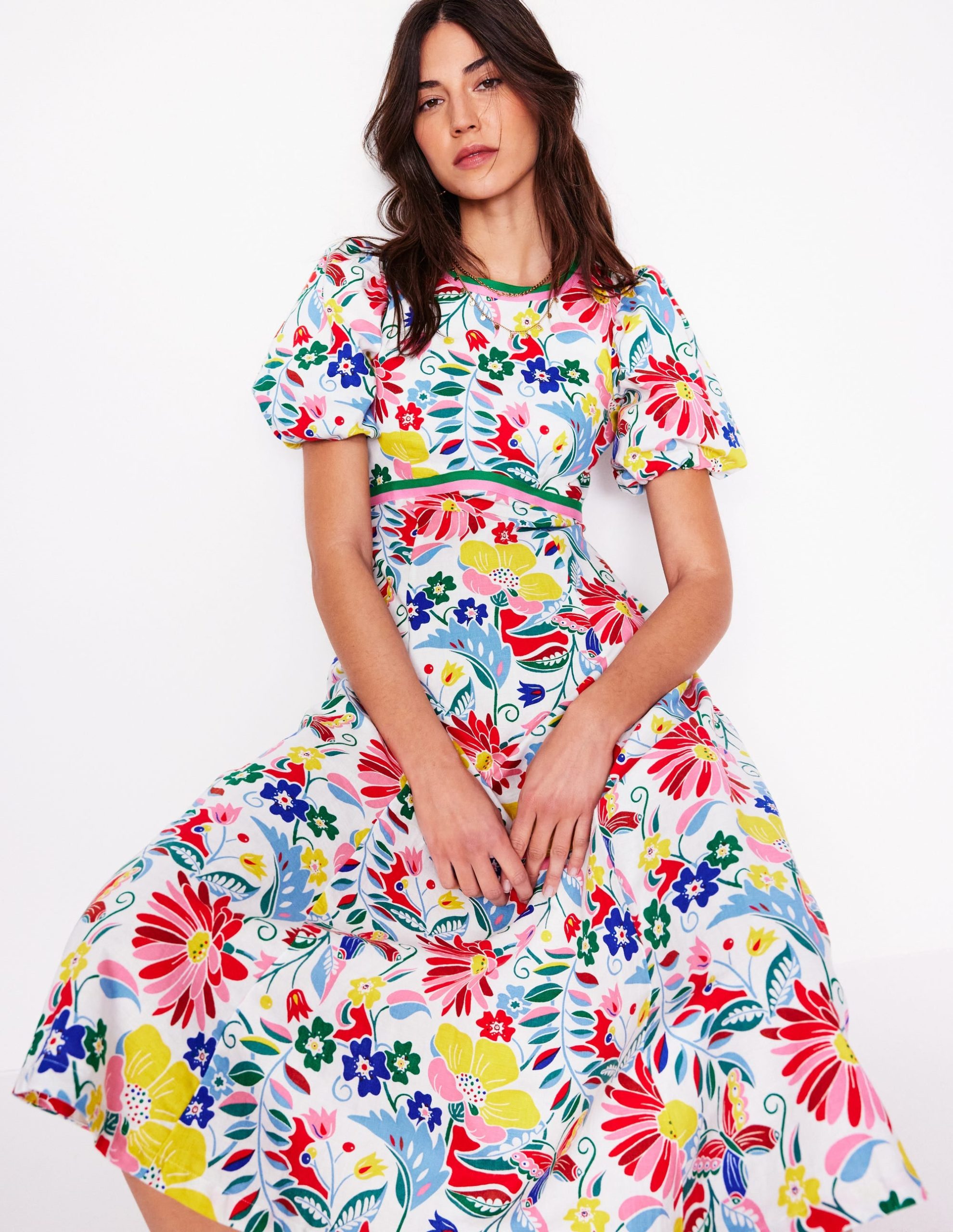 Empire Linen Tea Dress-Multi. Wildflower Trail