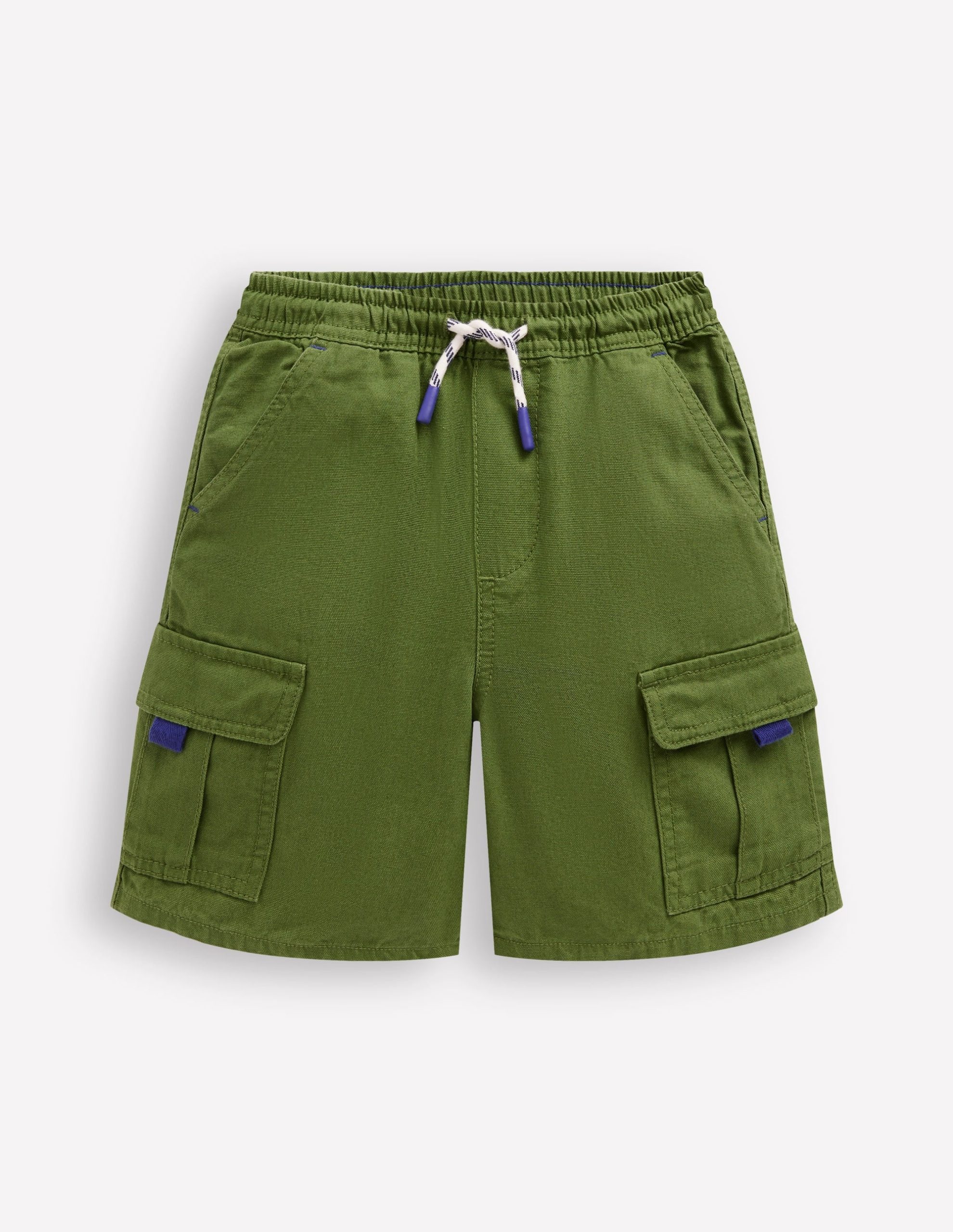 Our cargo shorts have every adventure covered. They’ve got a stretchy waistband with a drawstring tie. plus ??for essential explorer equipment ??there are pockets aplenty.