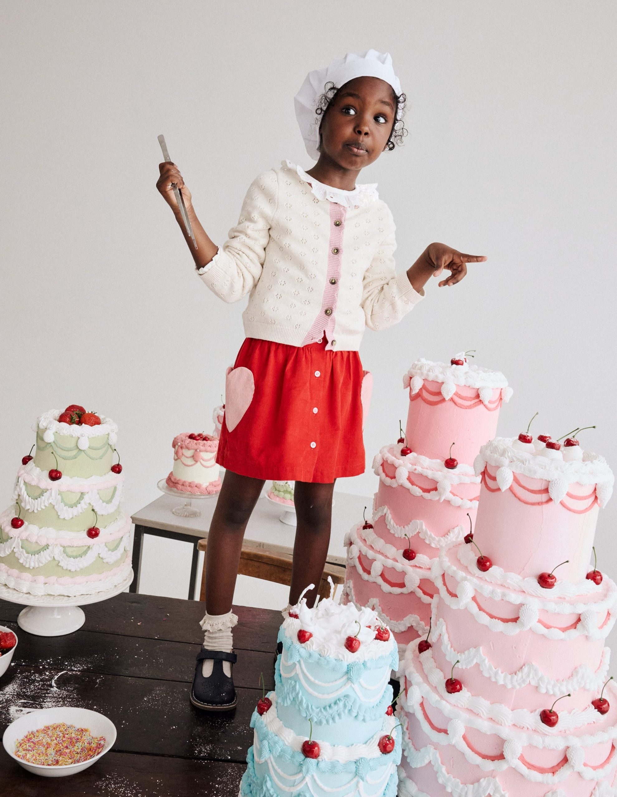 An everyday cardigan made from 100% natural fibres just like your mini. The pretty pointelle stitching and scallop trim add a special twist. Choose from lots of colours and fruity prints.