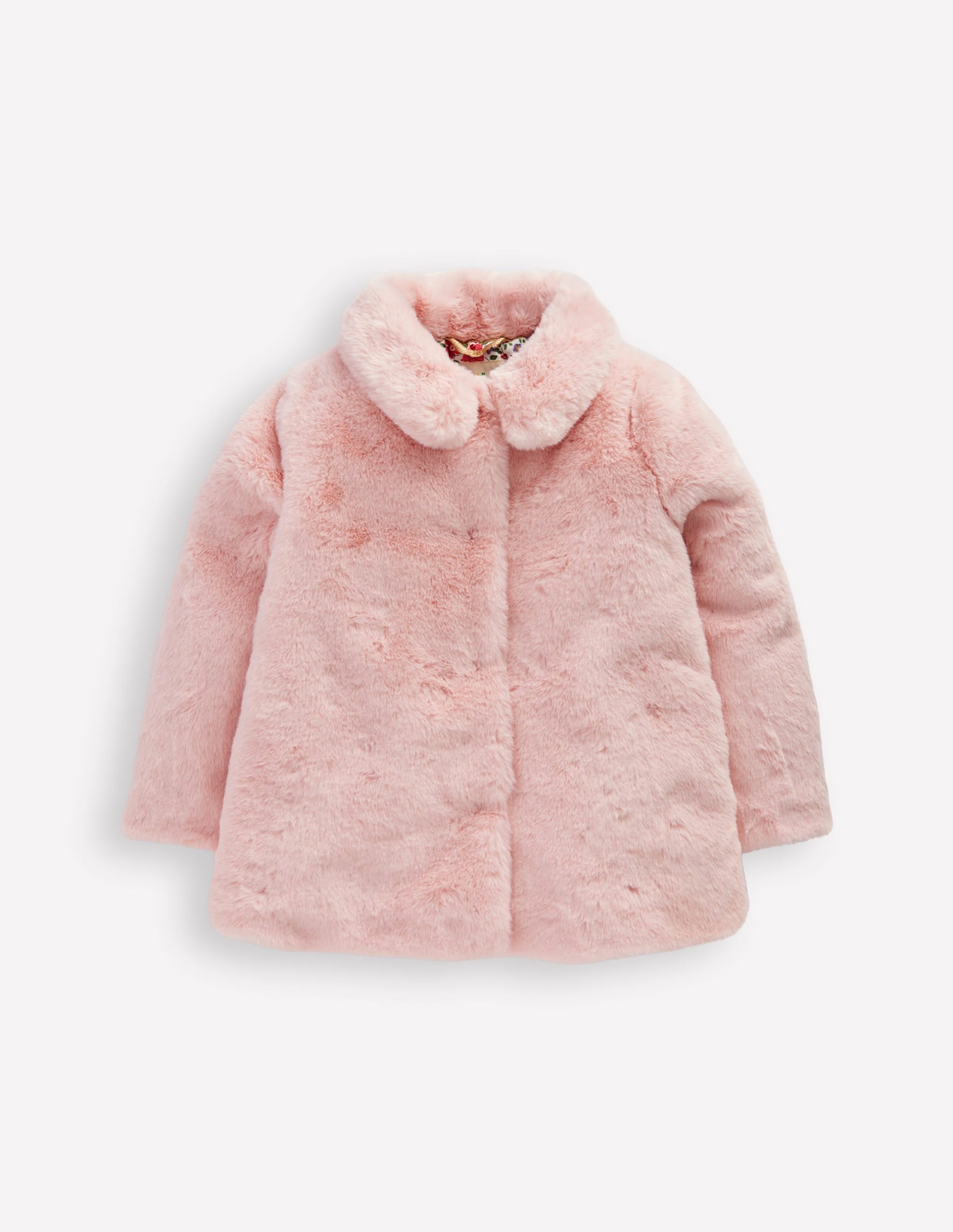 This coat has a few secrets up its bunny soft sleeves. We’ve added hidden poppers at the front and side pockets plus the snuggly faux fur is made with 100% recycled polyester.