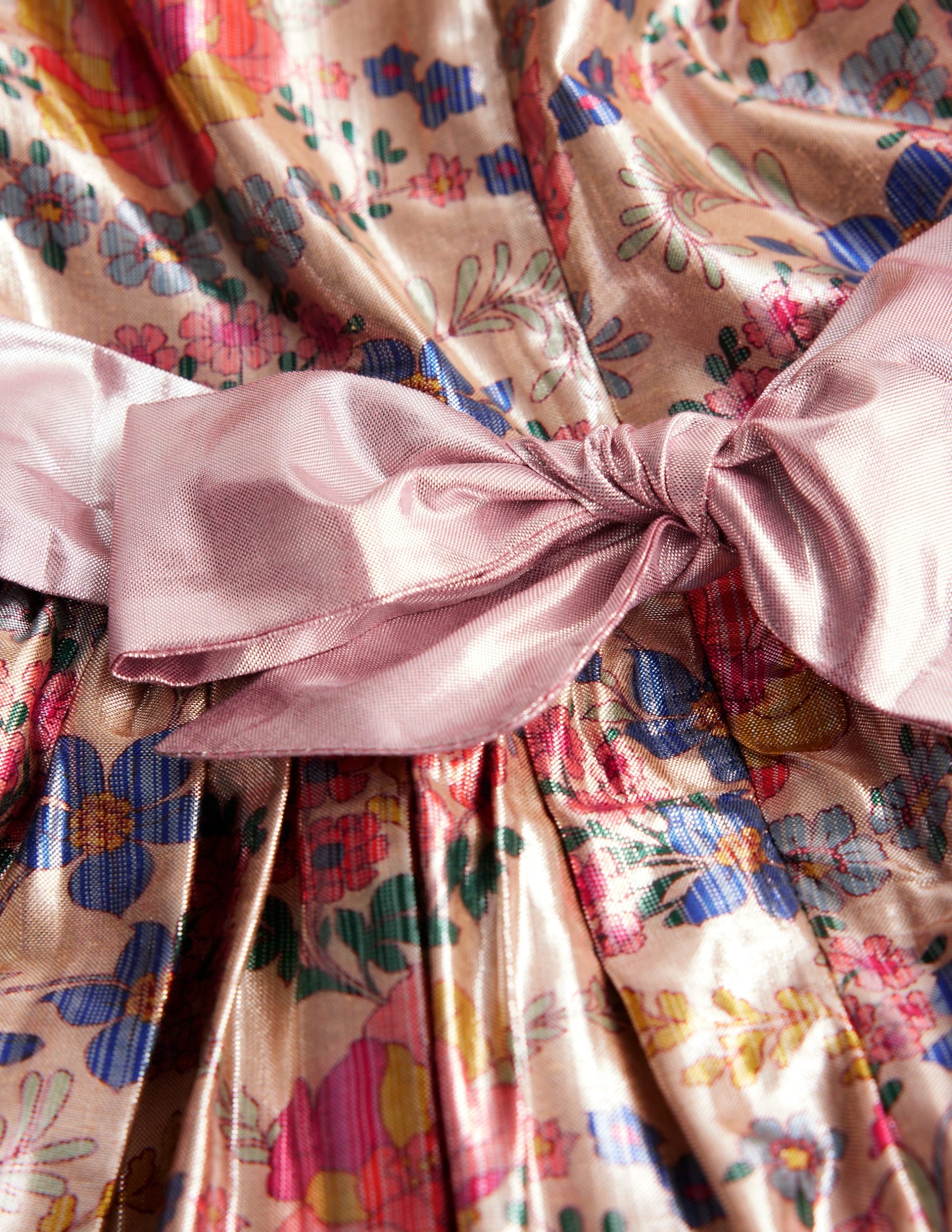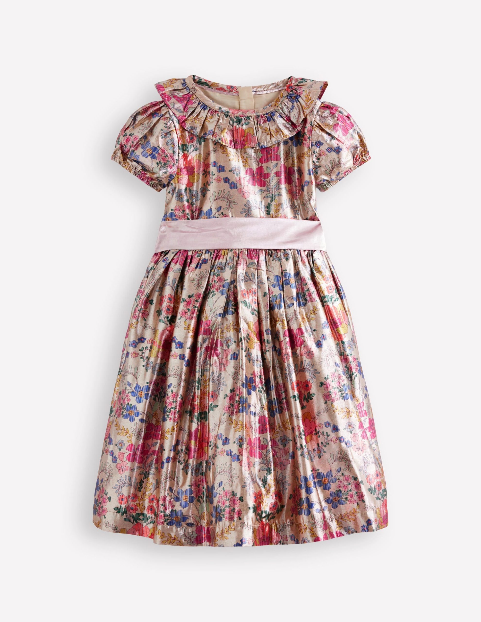 Let Minis shine in this showstopping metallic dress. With its puff sleeves. ruffles and sash bow. it will dazzle ??quite literally. Better make sure your camera roll has plenty of space.