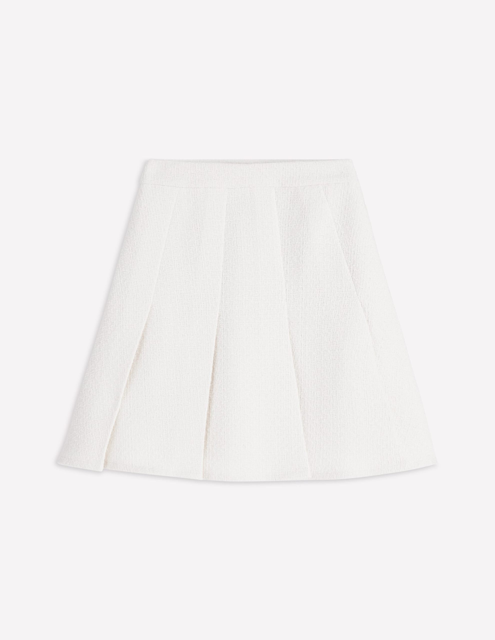 A textured mini skirt with flippy pleats. this is fully lined and sits on the natural waist. Style with our matching jacket for special occasions. or slouchy boots and soft knits when it’s really cold out.