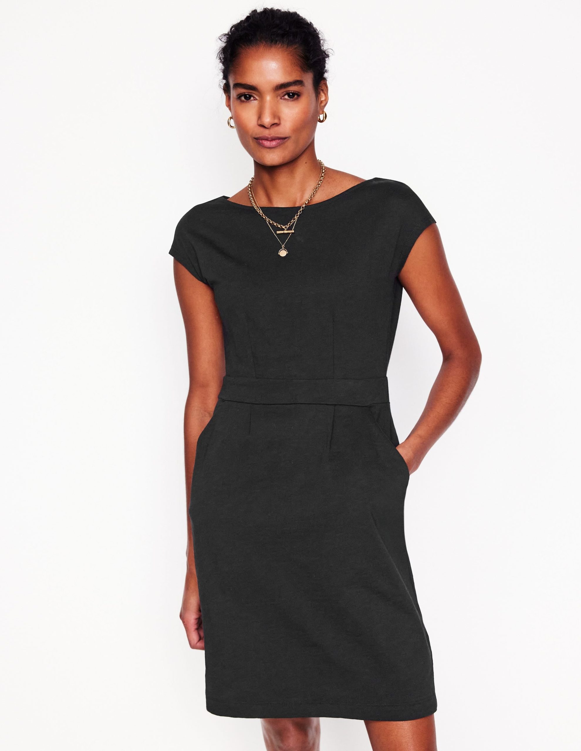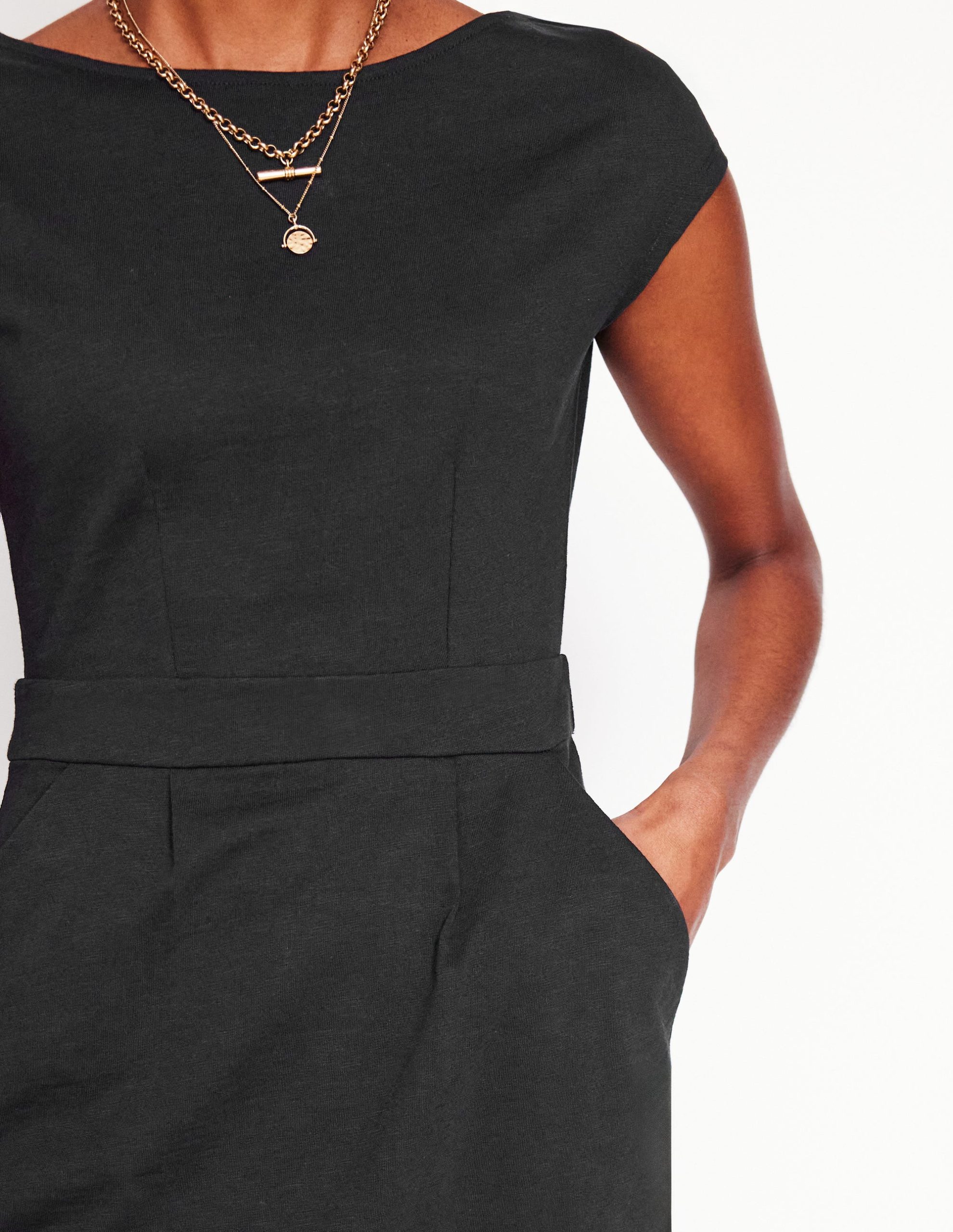 Our Florrie dress is made from slubbed-cotton jersey. giving the fabric a subtle texture. Smart enough for work. it’s cut to a tailored shape with a waistband that’s accentuated by a front box pleat and side pockets.