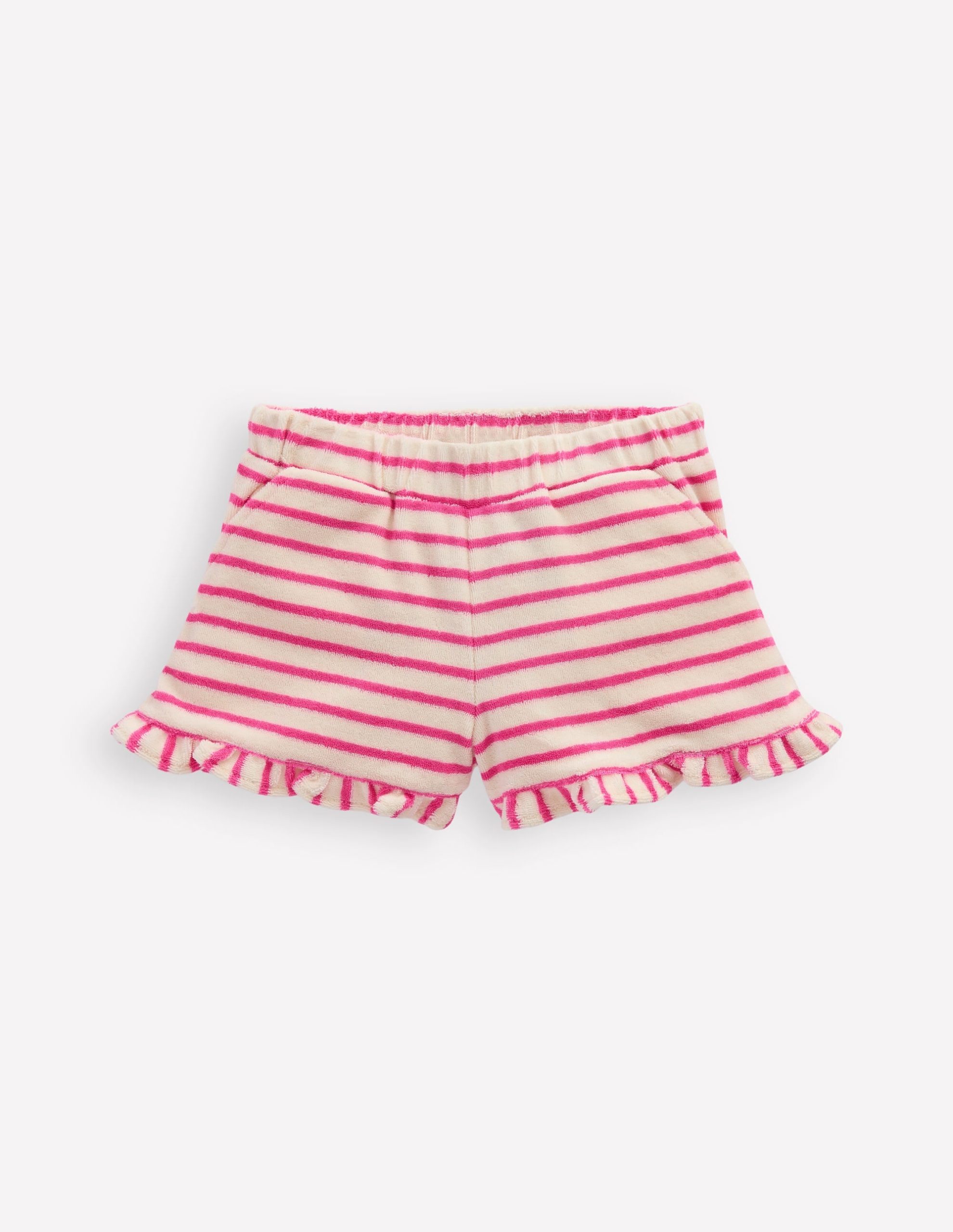 Frill Hem Towelling Shorts-Sorbet Pink/ Ivory Stripe