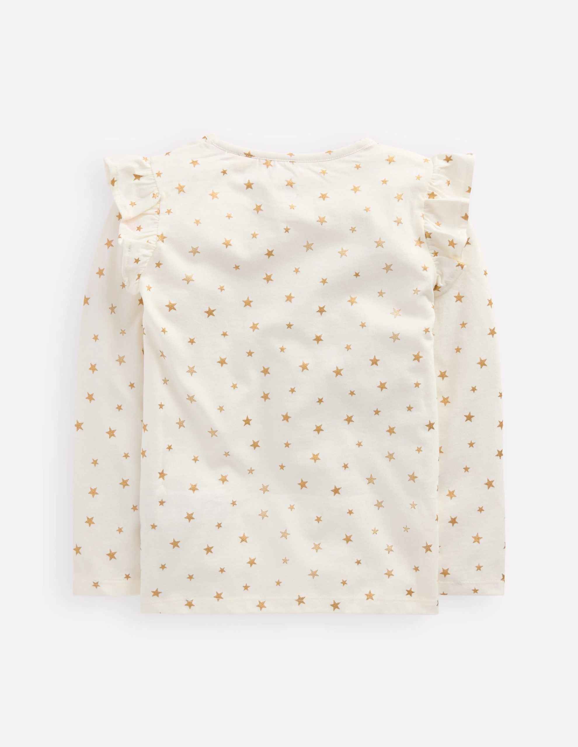 Frill Sleeve Appliqu?? T-shirt-Ivory Fairies