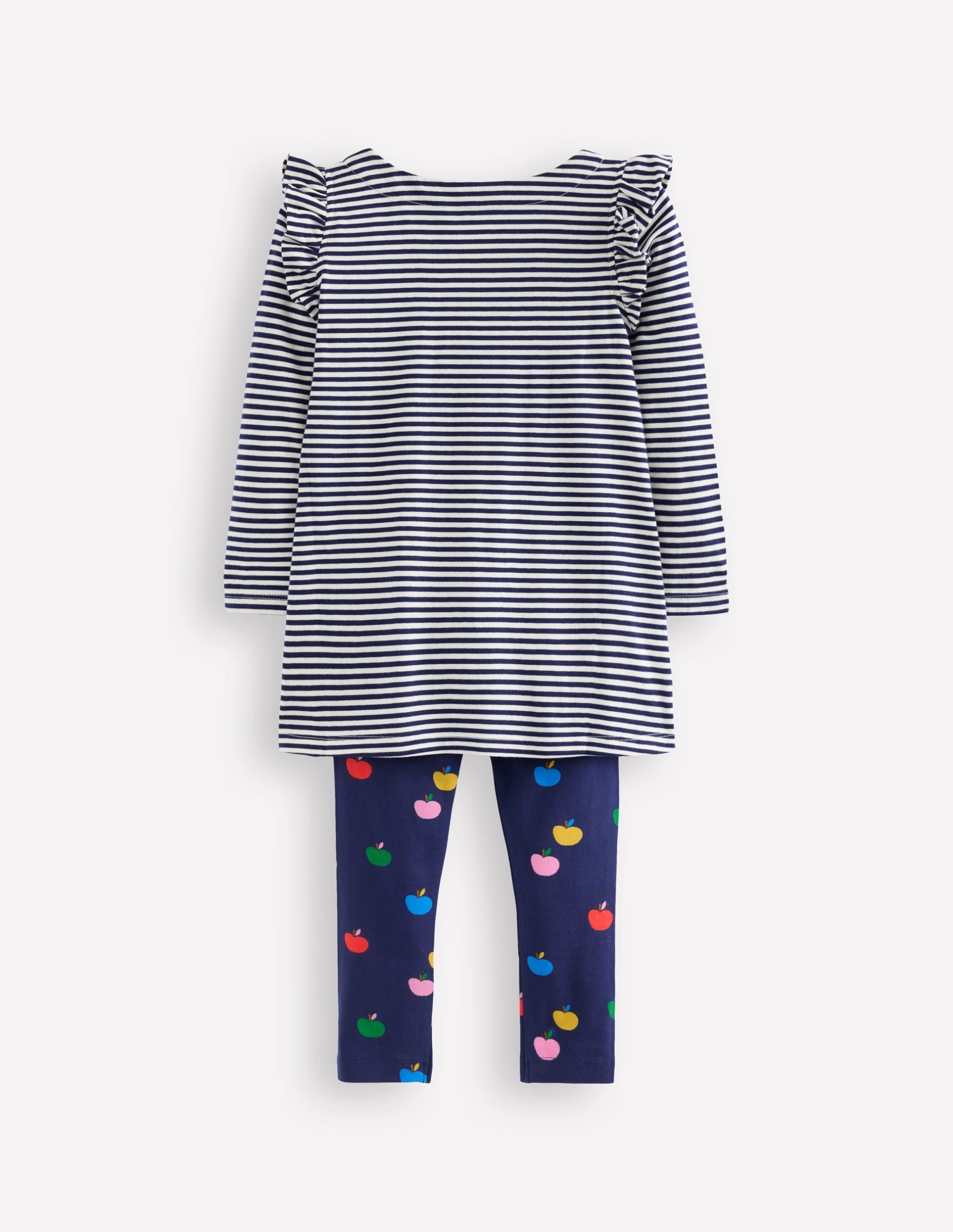 Frill Tunic Leggings Set-College Navy/ Ivory Apples
