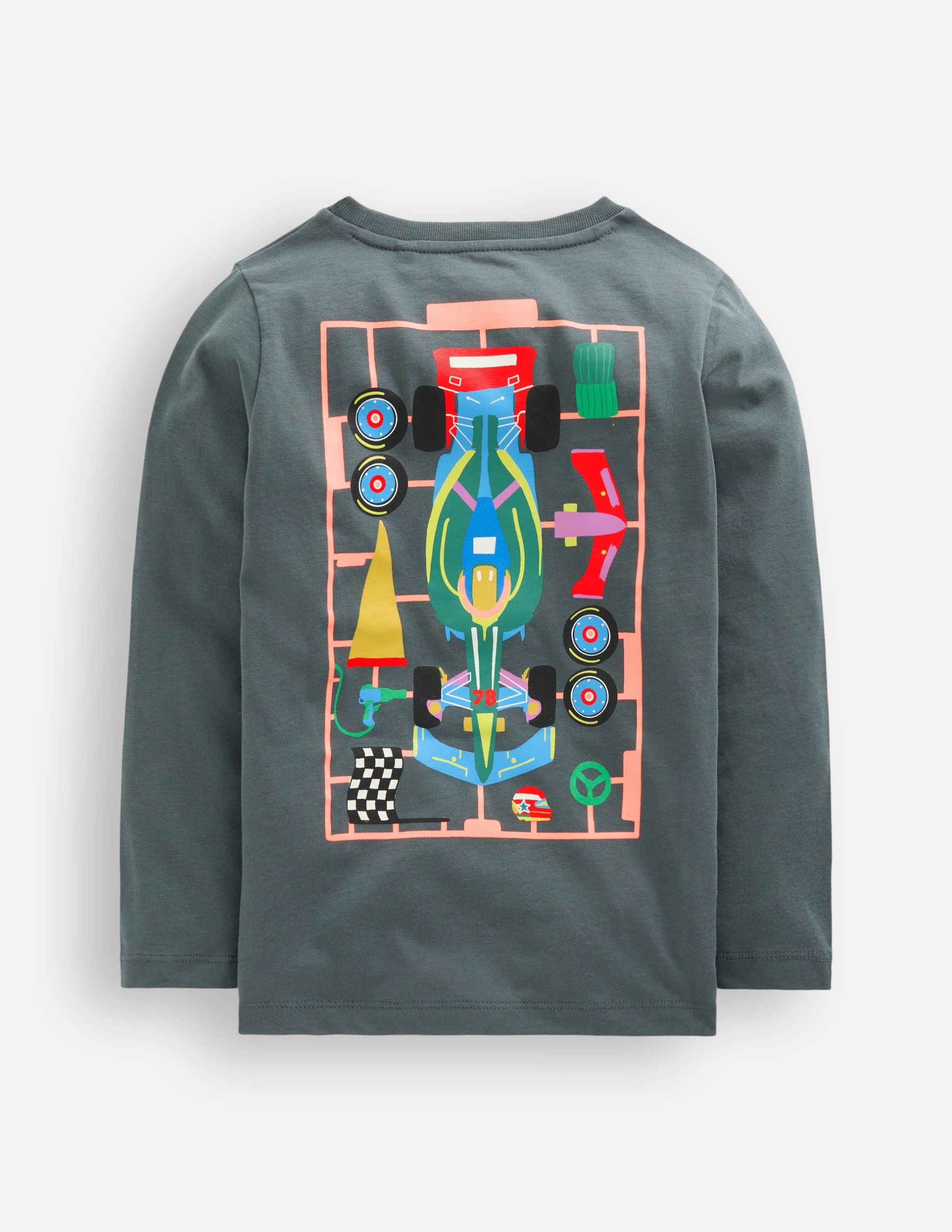 Trucks. space travel or fiery volcanoes: this soft cotton jersey tee is decorated with fun motifs front and back. The long sleeves will keep Minis cosy into Autumn.