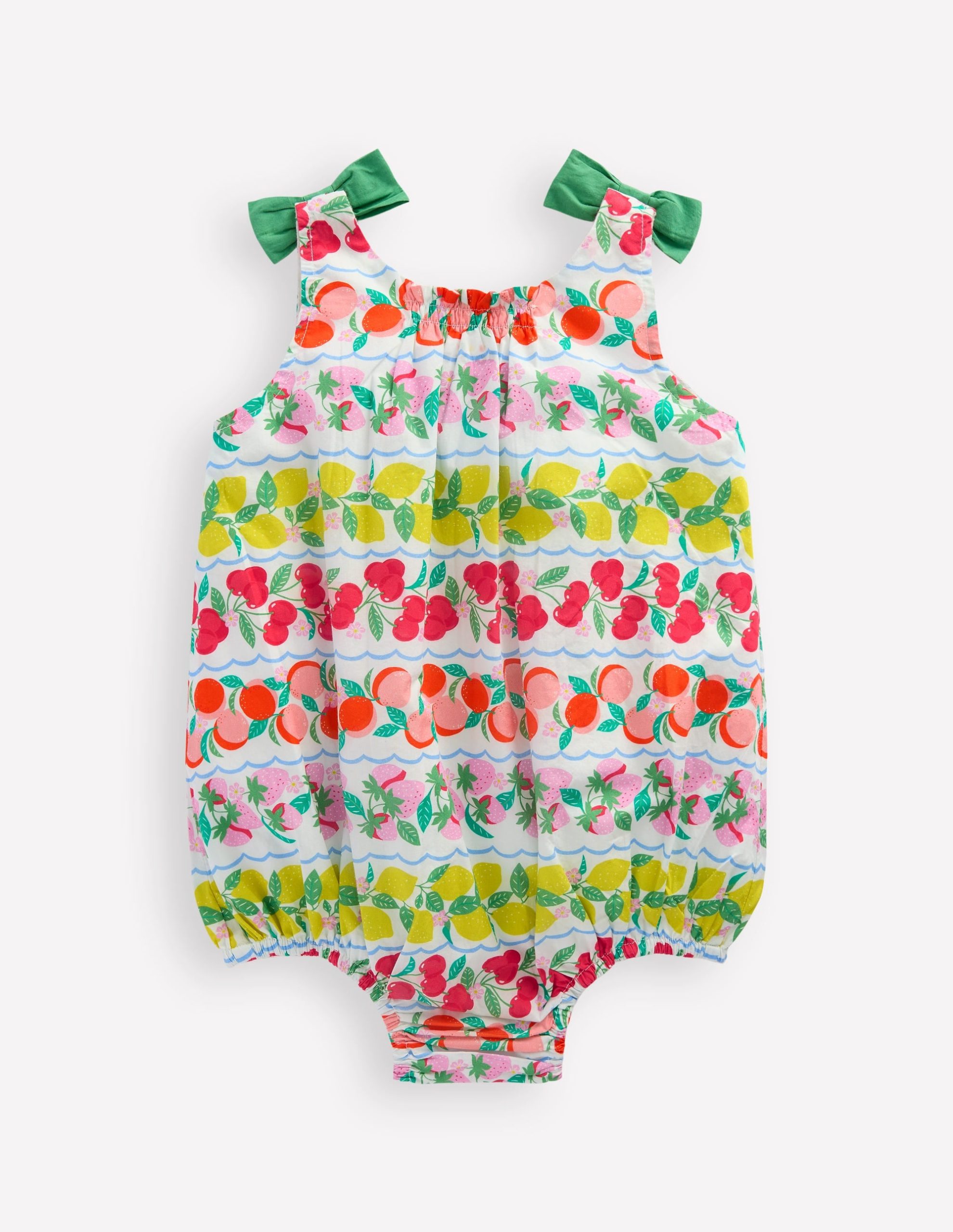 Girls Bubble Romper-Multi Fruit Stripe
