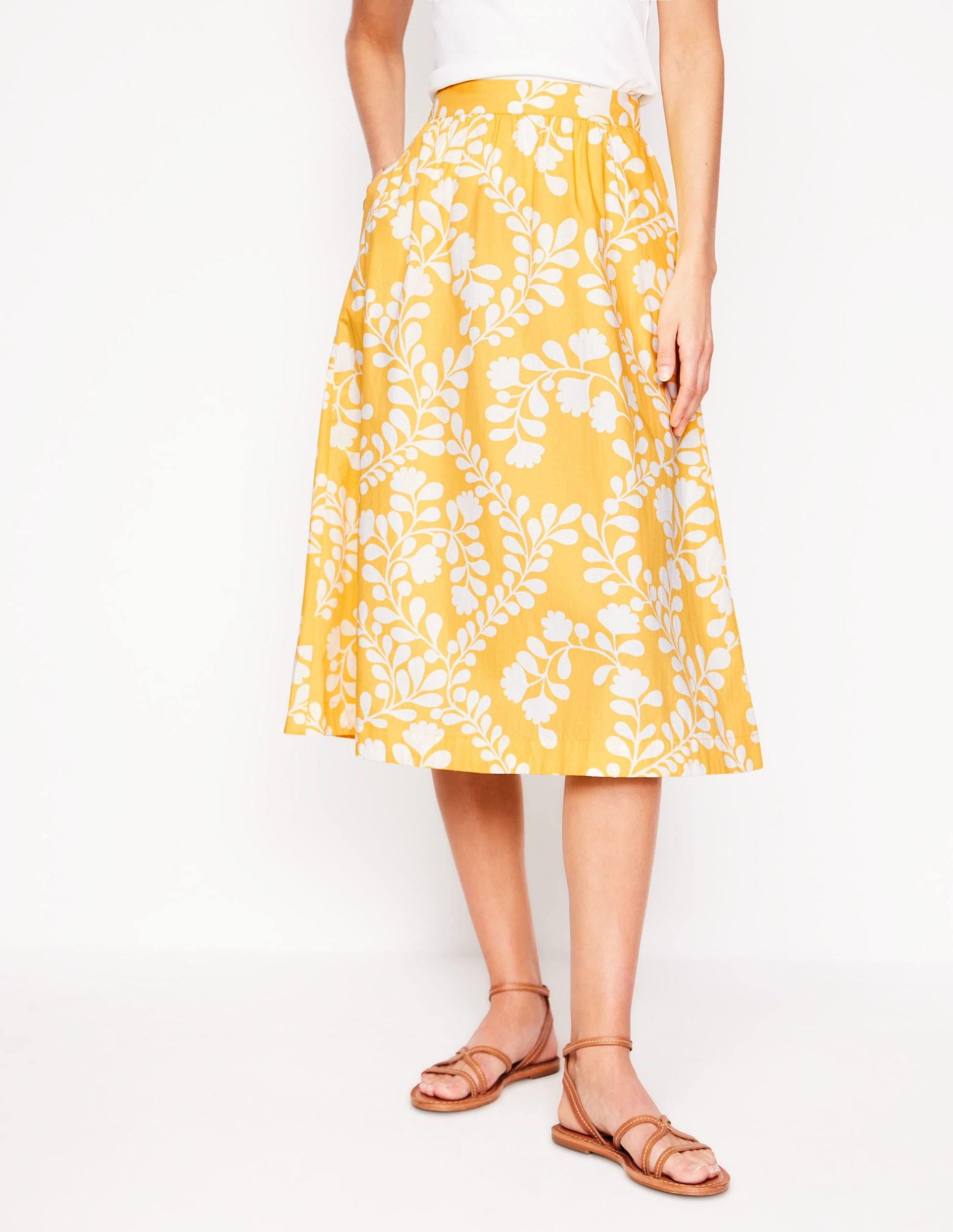 Hattie Poplin Midi Skirt-Yellow. Vine Silhouette