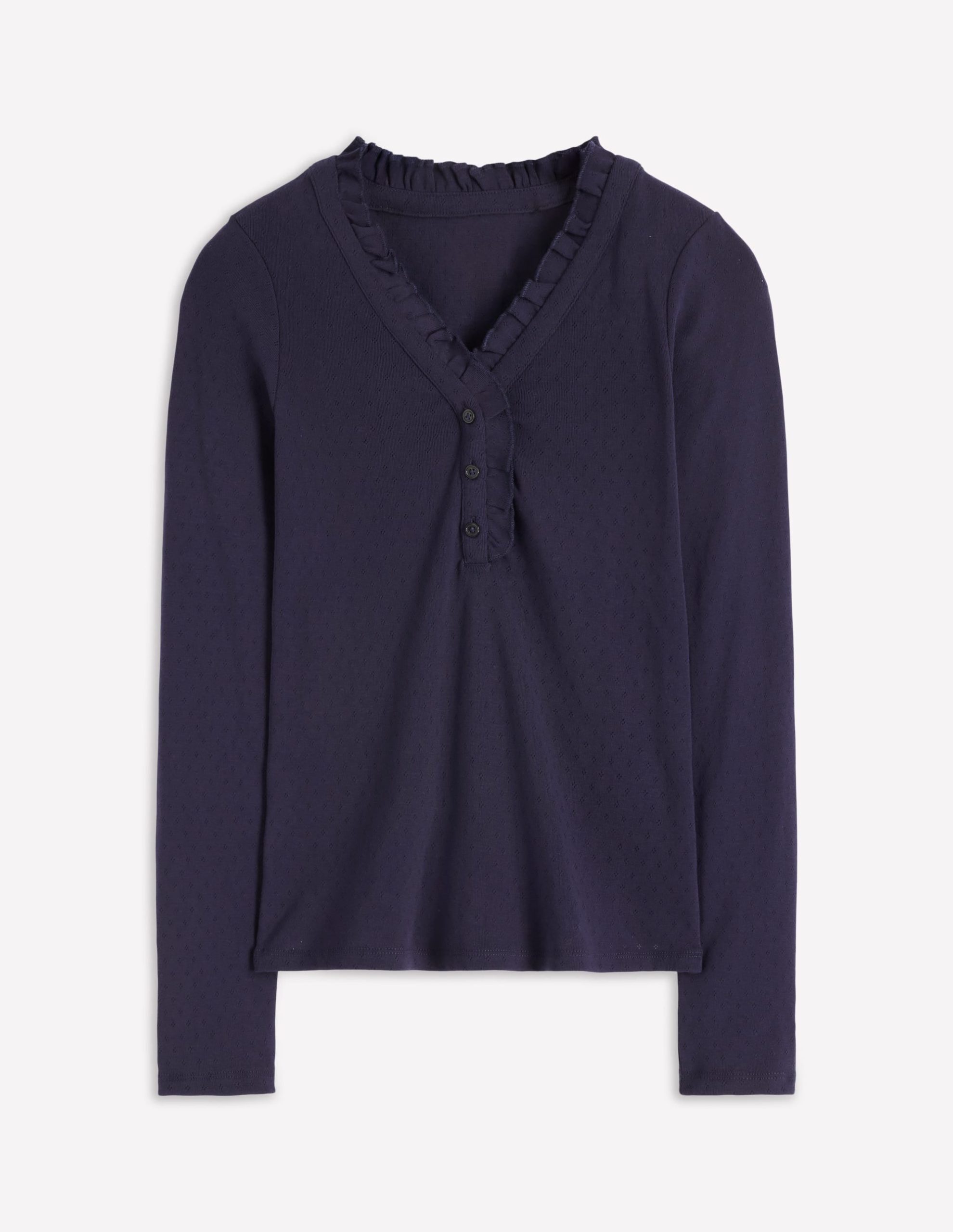 We know you love our Henley tops. so we made one for sleeping and lounging around in. Pure cotton with soft pointelle stitching and a frilled neckline. this pyjama top is a stylish and comfortable choice.