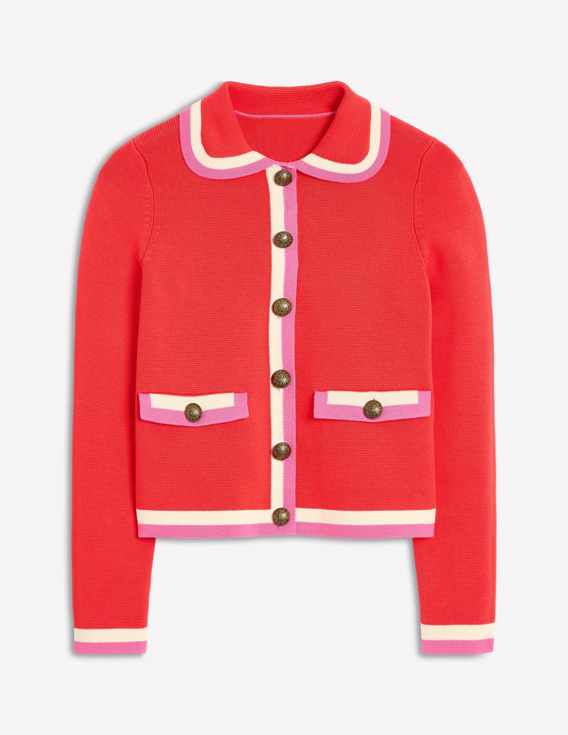 Holly Collared Knitted Jacket-Strawberry Tart Red