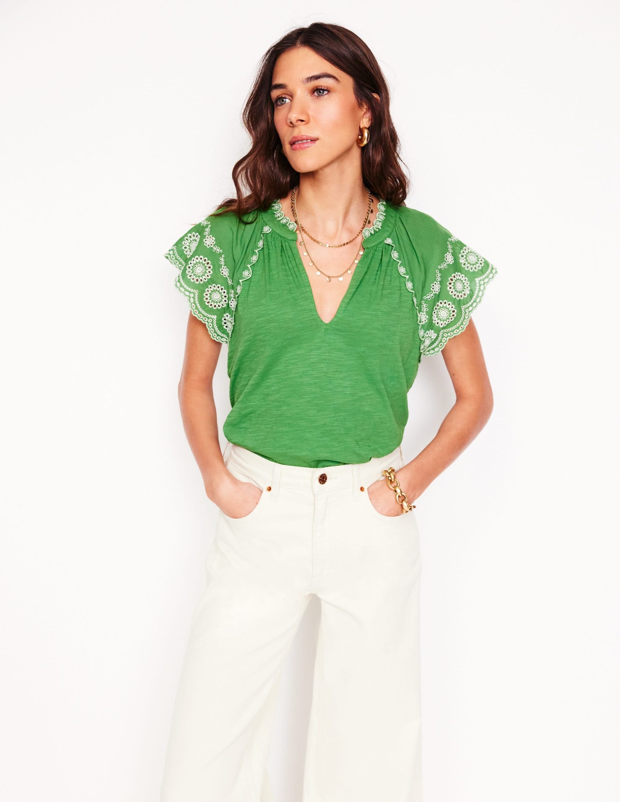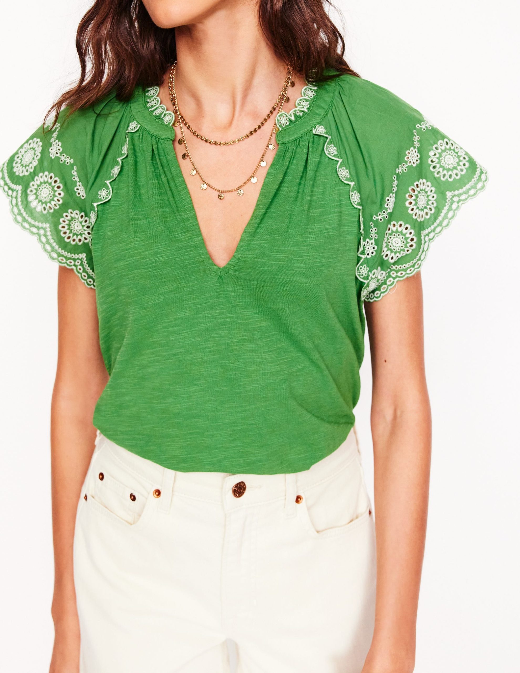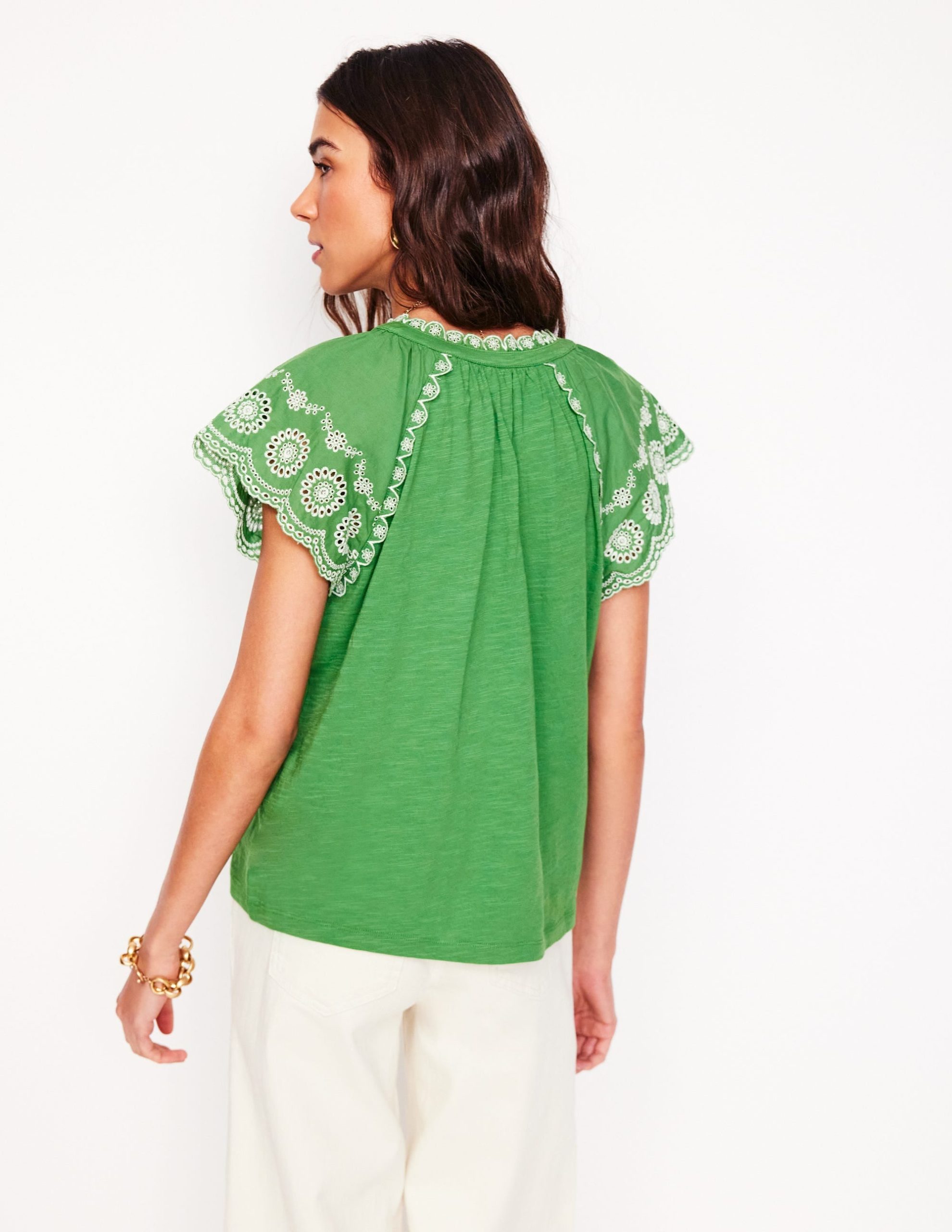 Ila Broderie Sleeve Notch Top-Paradise Green