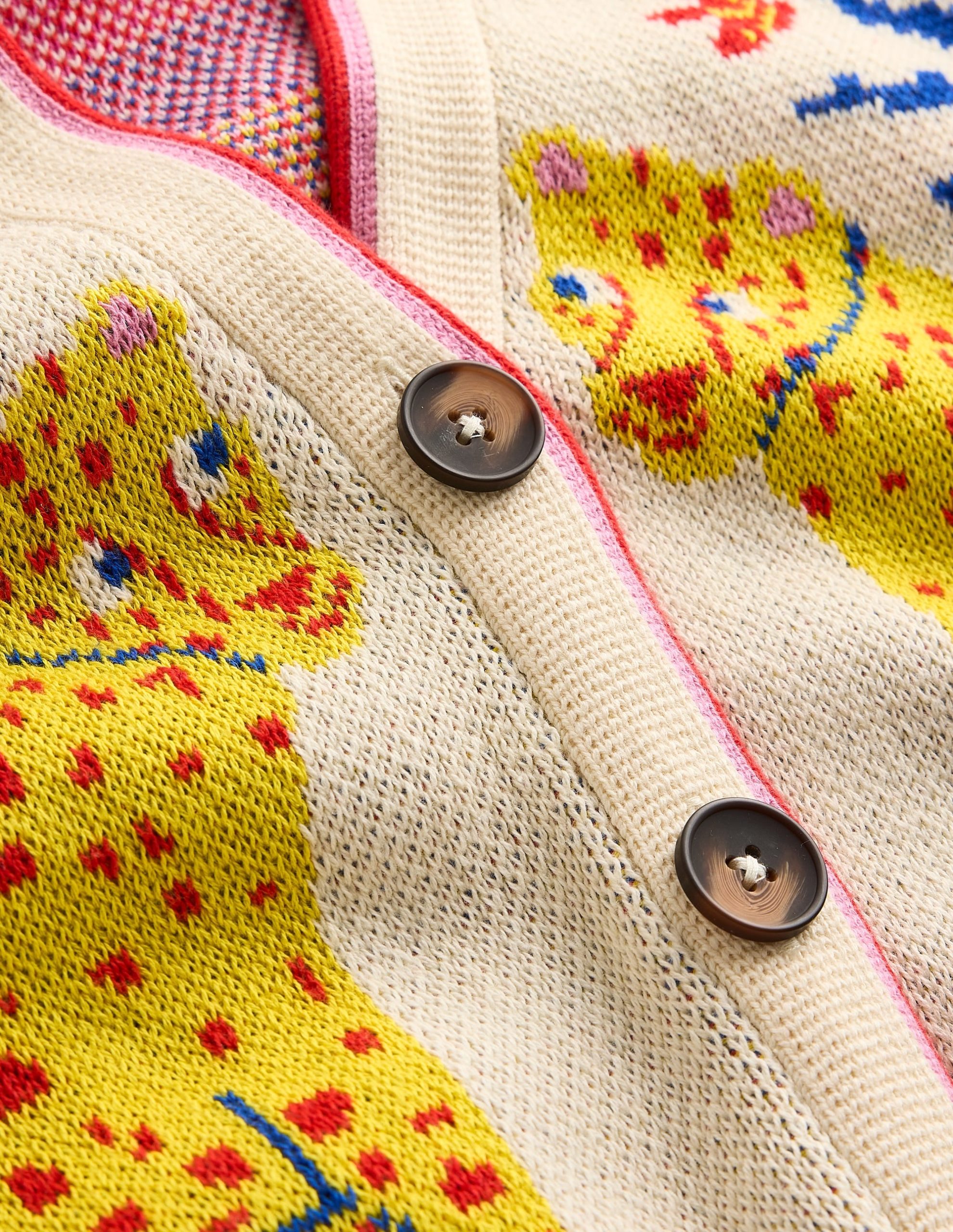 Jacquard Boyfriend Cardigan-Warm Ivory. Leopard